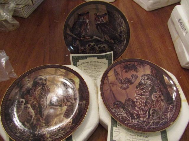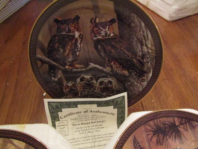 3 Collectible Owl Theme Plates- with boxes and COAs
