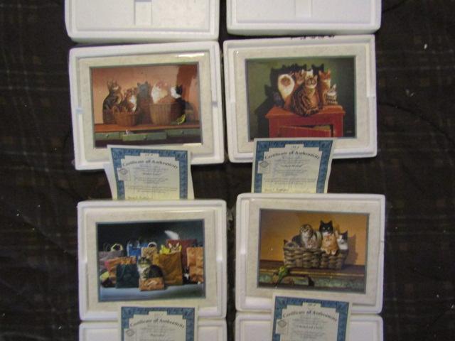 4 Collectible Square Plaques (Purr-fect Packages). With COAs and boxes.