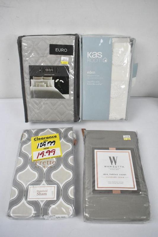 4 Coordinating Pillow Shams: Grays/Off White. 3 Standard Size, 1 Euro Size - New