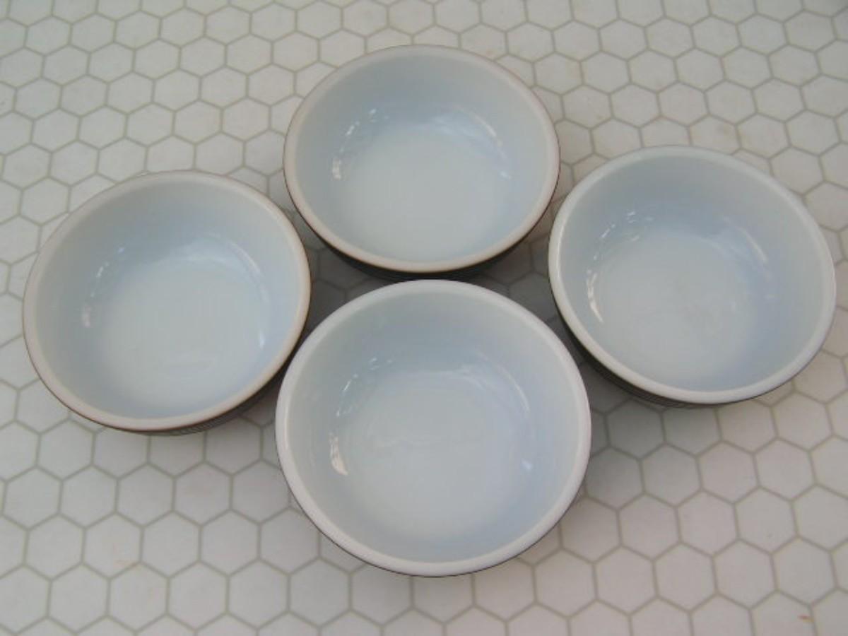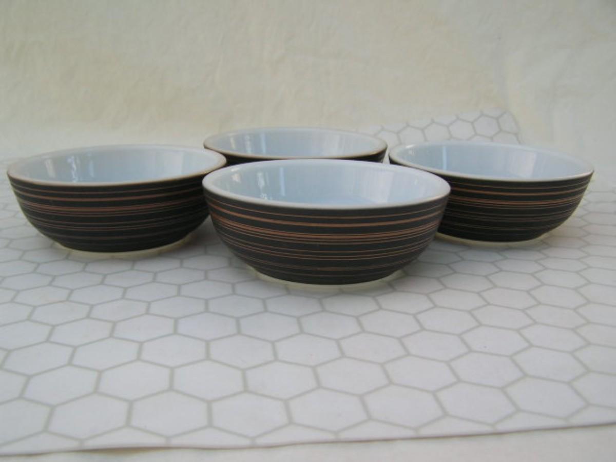 4 Corning Ovenware labeled (Pyrex) Terra series cereal bowls. c.1960s