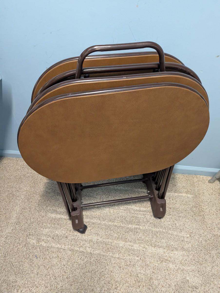 4 Cosco Brown Vinyl TV Trays Mid Century Modern Tall Metal Legs Wheeled Stand Choice 1
