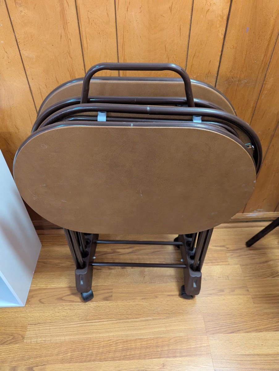 4 Cosco Brown Vinyl TV Trays Mid Century Modern Tall Metal Legs Wheeled Stand Choice 2