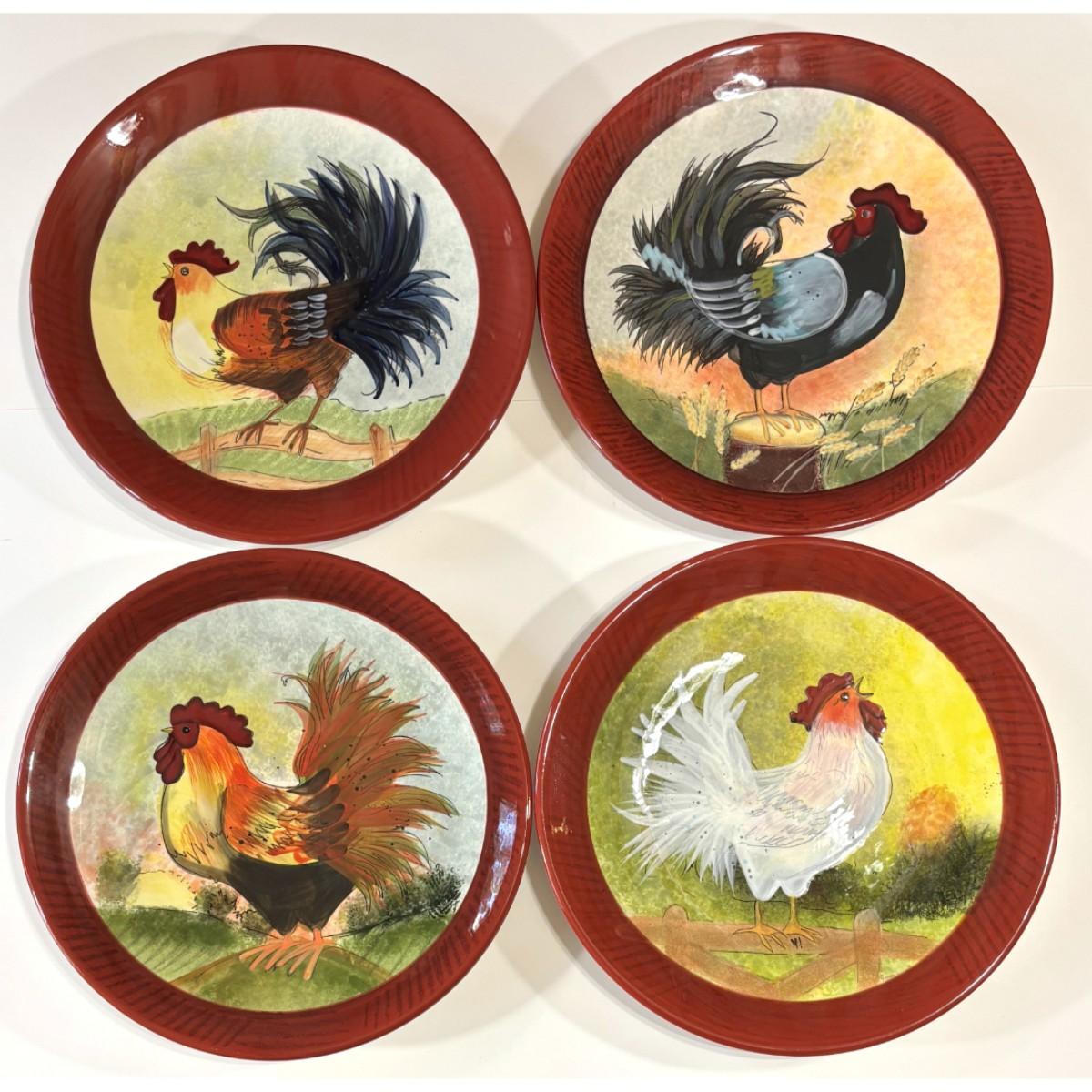 4 Cracker Barrel Old Country Store Susan Winget Rooster Dinner Plates Farm