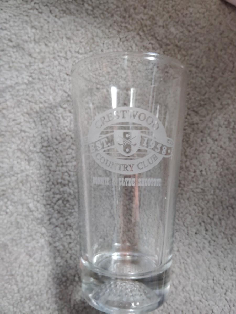 Crestwood Country Club" and "Bonnie & Clyde Shootout." 4 Glasses 16 oz