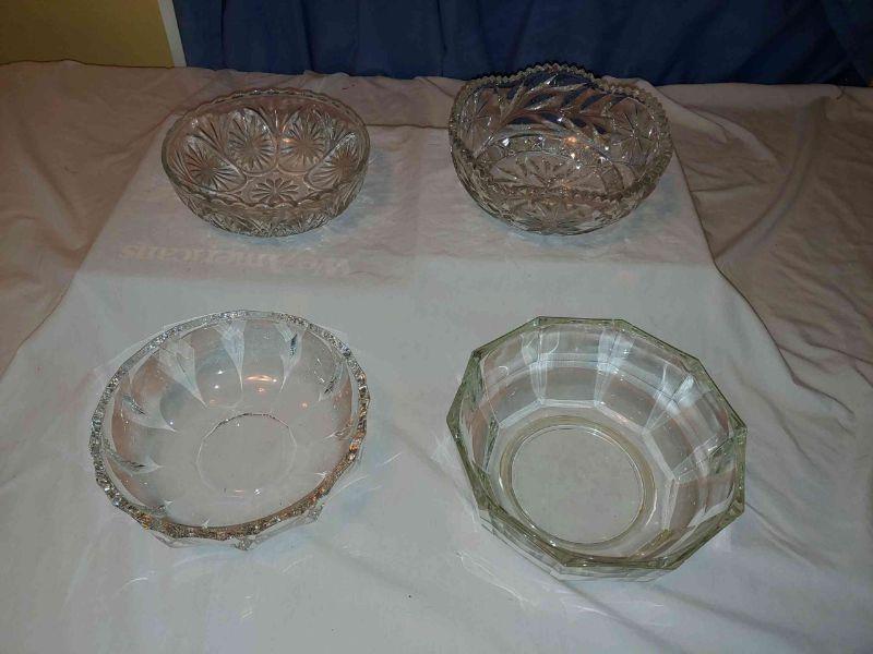 Please Don't Let The Sales Tax etc Scare You Away; There Is None; Can Pay In Cash. 4 crystal bowls. Final Estate Sale! Everything Must Go! Rock Bottom Prices!