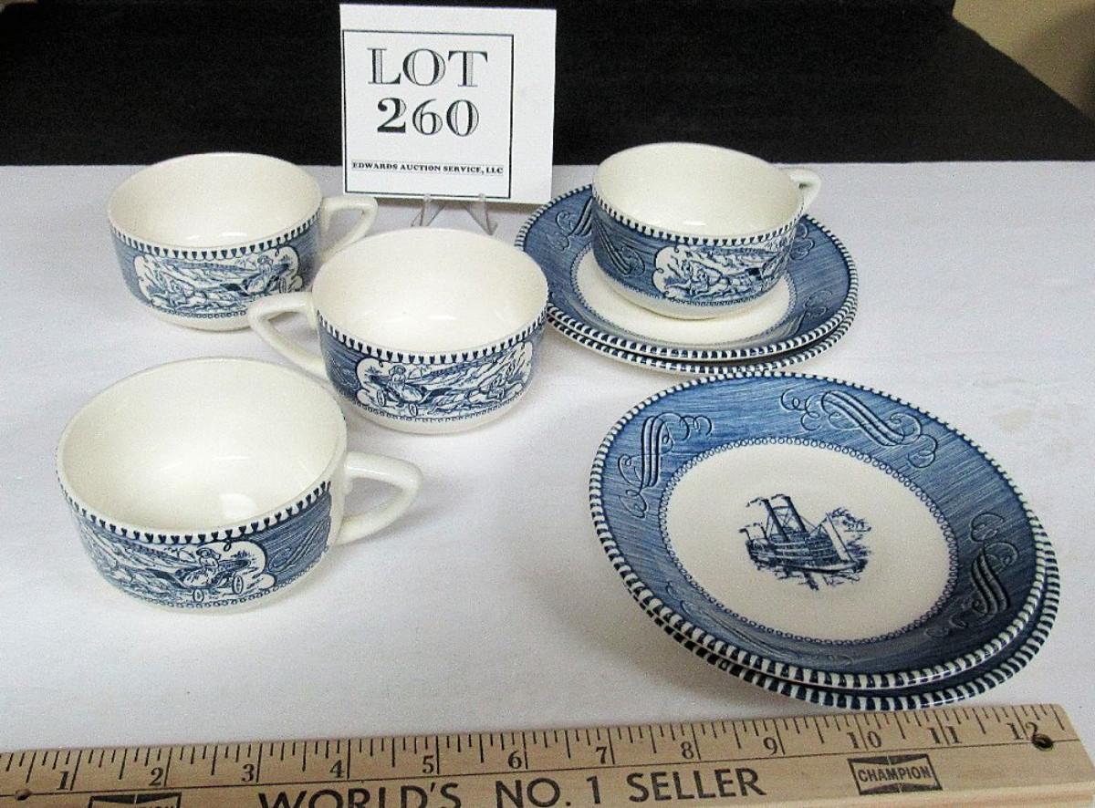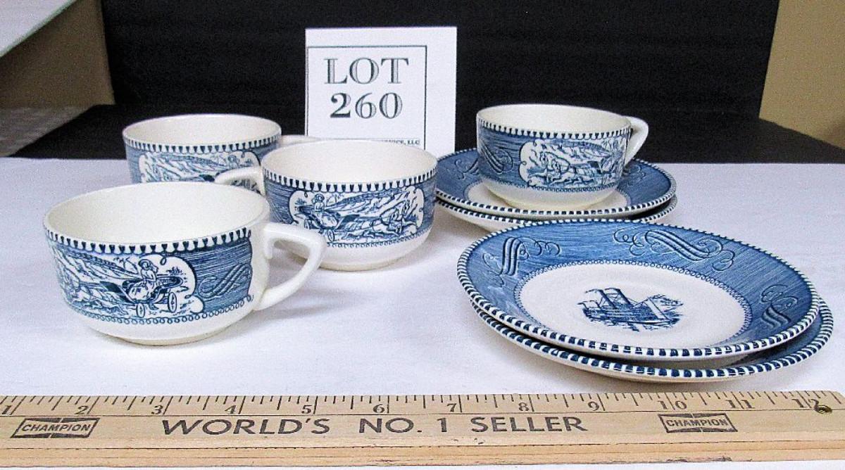 4 Currier and Ives Cup and Saucer Sets