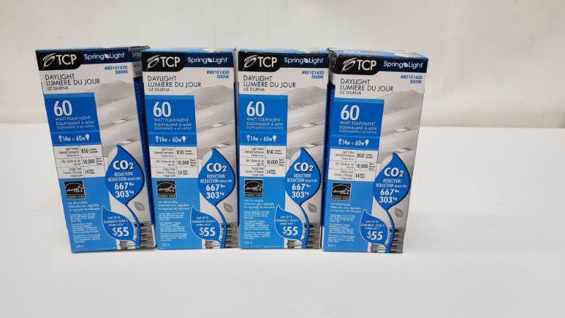 4 Daylight Bulbs, 60 Watt Equivalent, Spring Light, 4 Qty - New