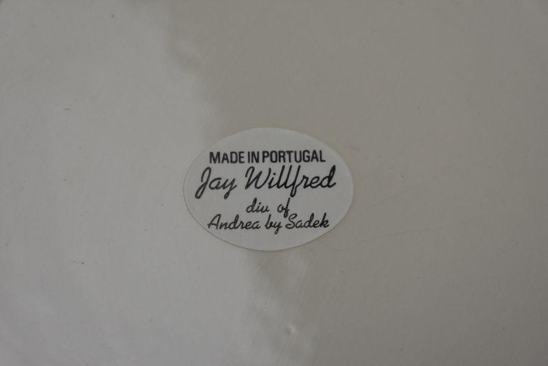 4 Decorative Plates with Black Metal Wall Plate Rack. Plates made in Portugal by Jay Willfred