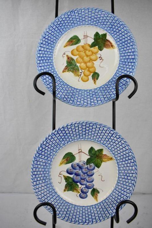 4 Decorative Plates w/ Black Metal Wall Plate Rack. Made in Portugal by Willfred