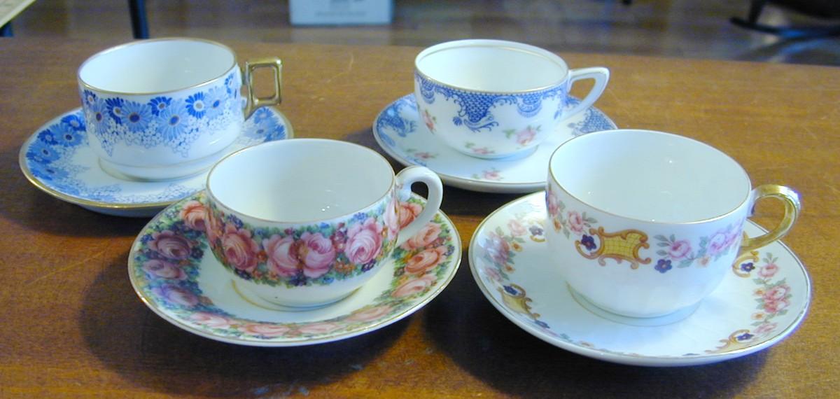 4 Delicate Demitasse Cups & Saucers