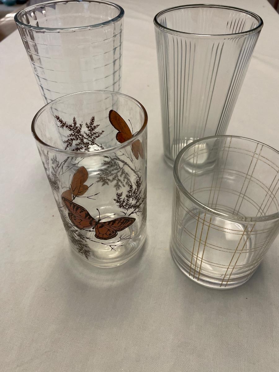 Four different patterns of drinking glasses