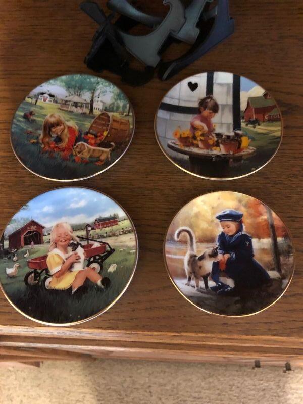 Set of 4 miniature collector plates by famed artist of children, Donald Zolan. About 3" size.