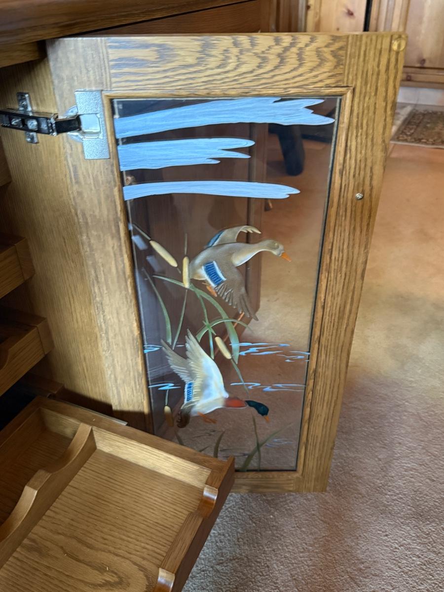 Wine Cabinet w/duck themed glass doors