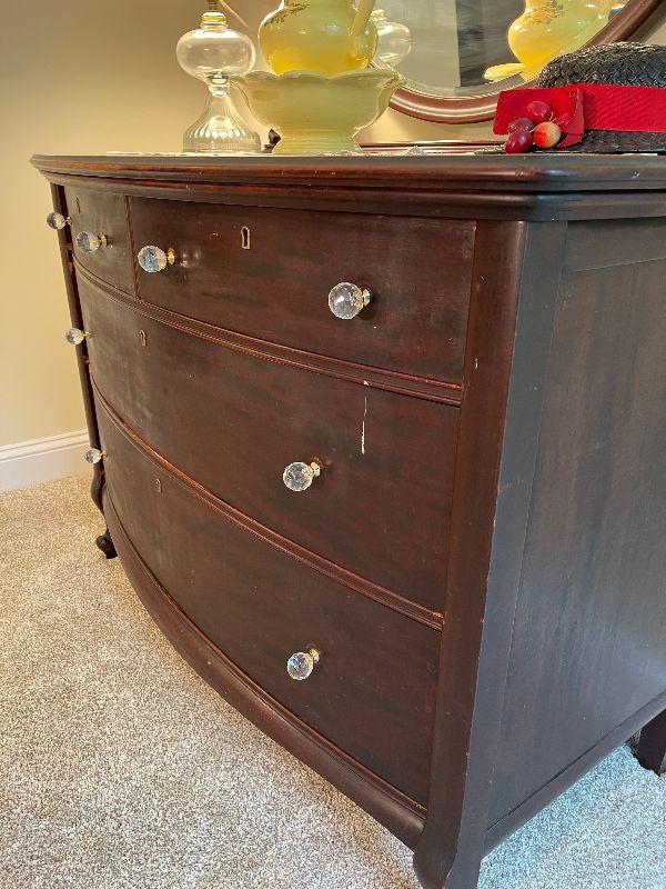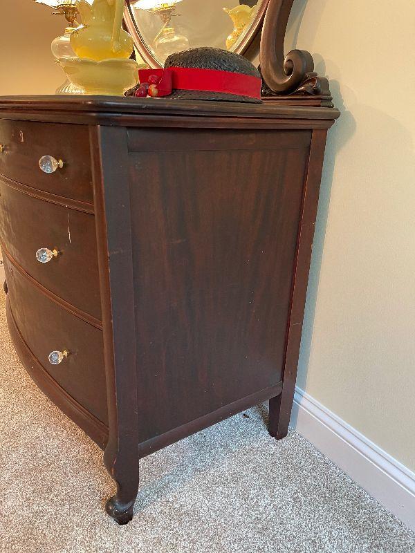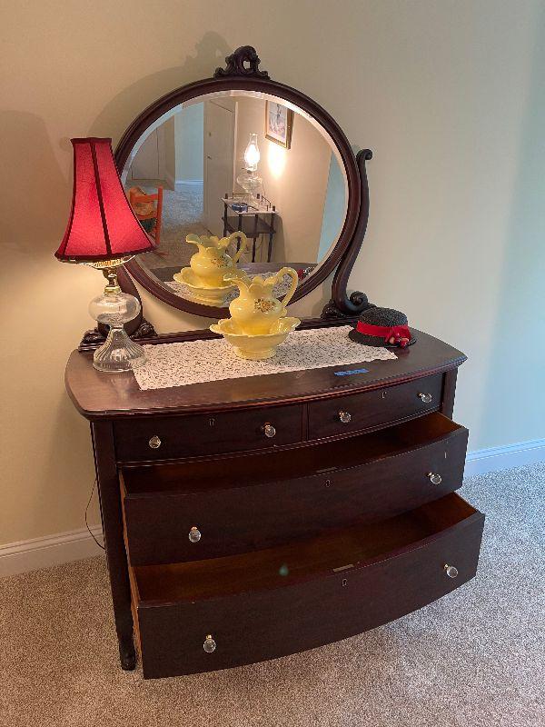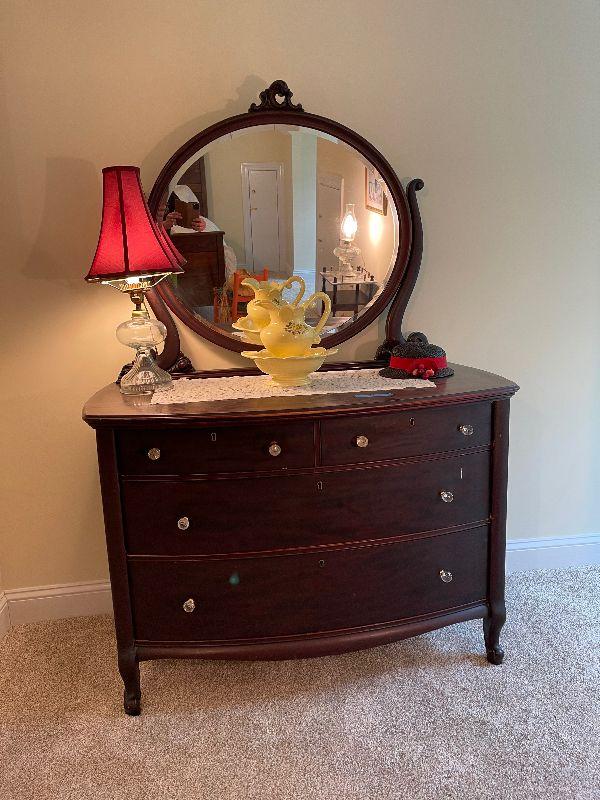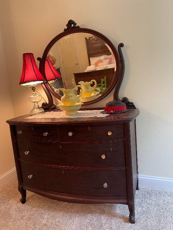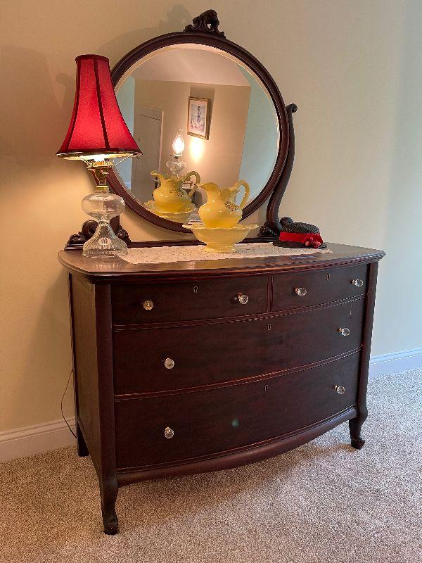 Lot 3 - Antique 4 Drawer Dresser and Vintage Decor