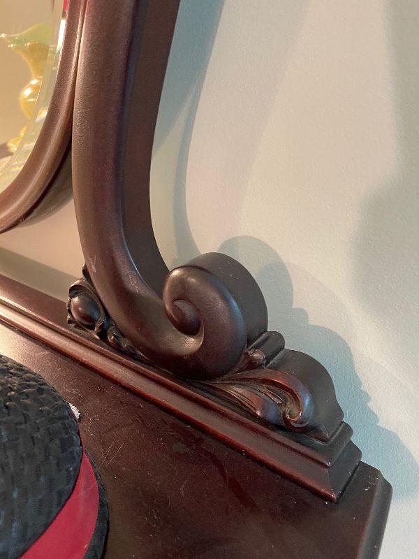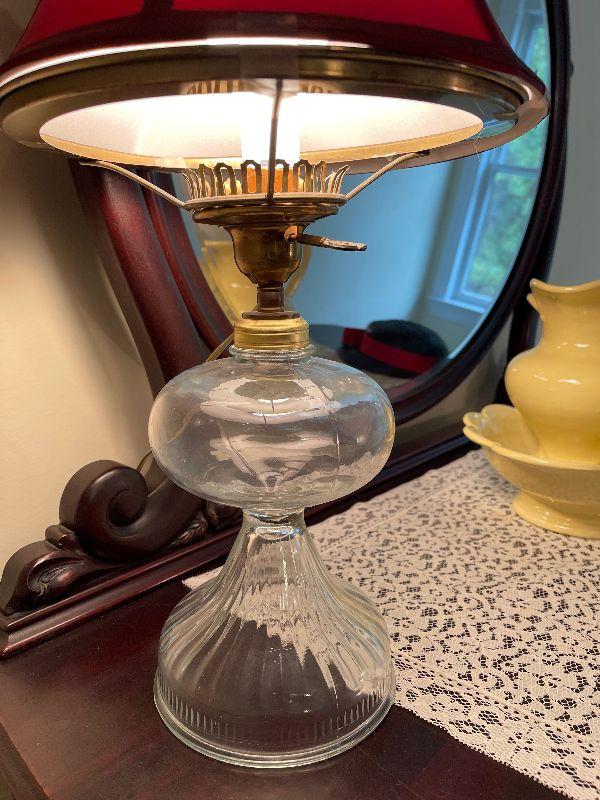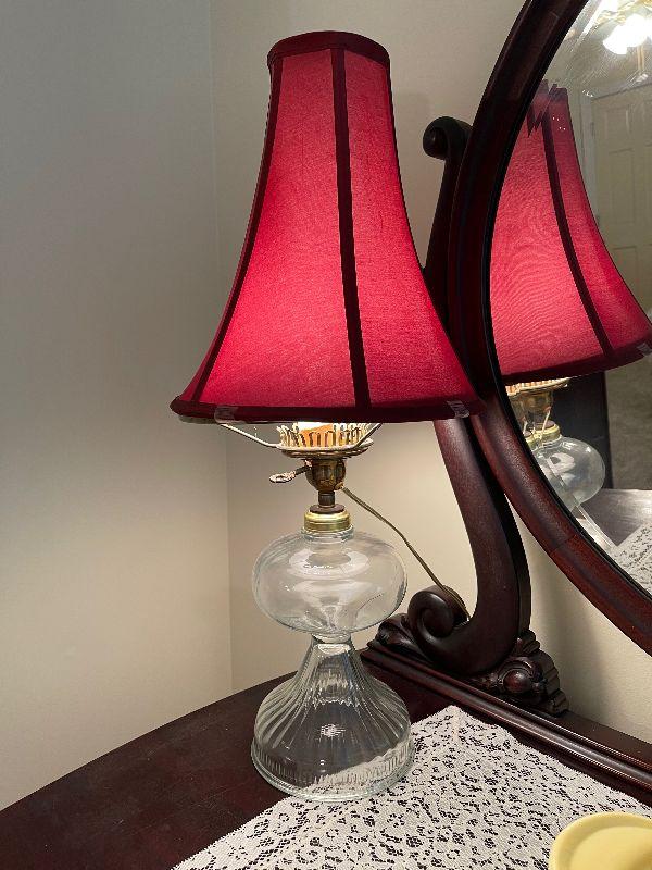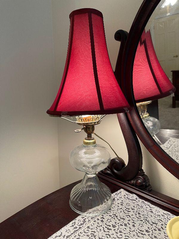 4 Drawer Antique Dresser with Attached Mirror. Pitcher & Basin, Hat and Electric 'Oil Lamp' .