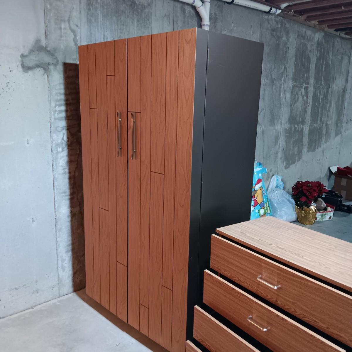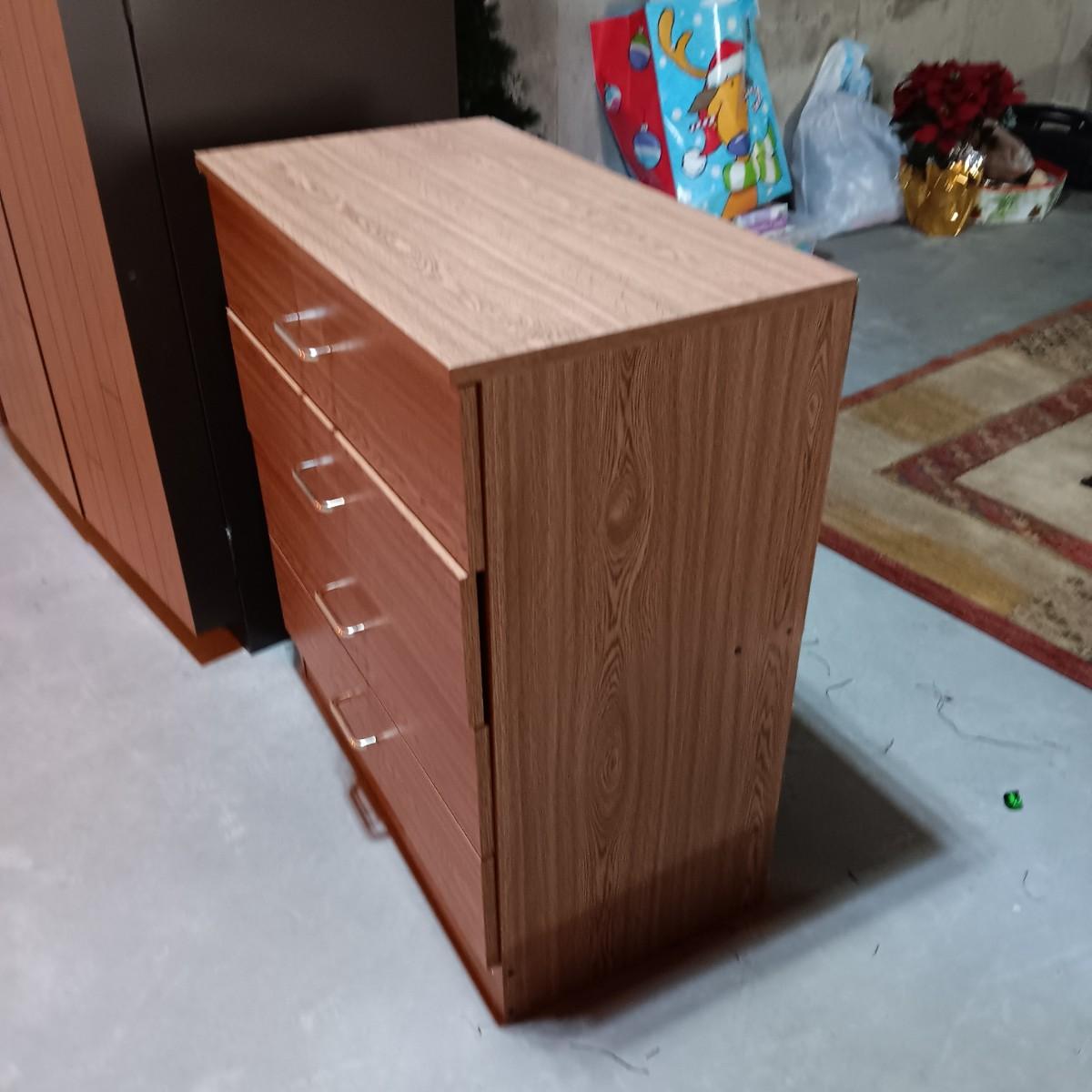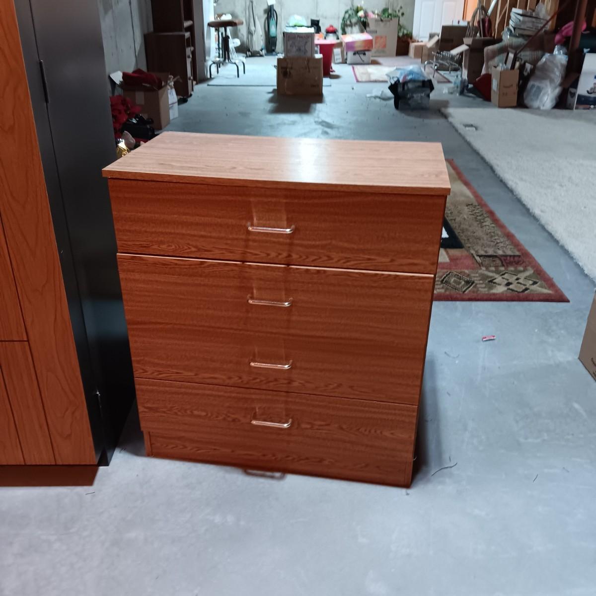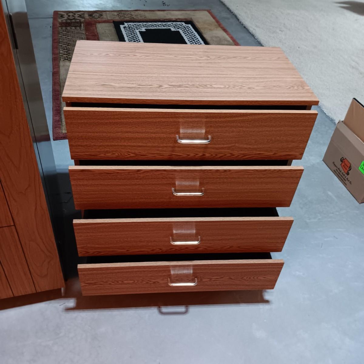 4 DRAWER CHEST, METAL WARDROBE CLOSET AND A FLOOR LAMP