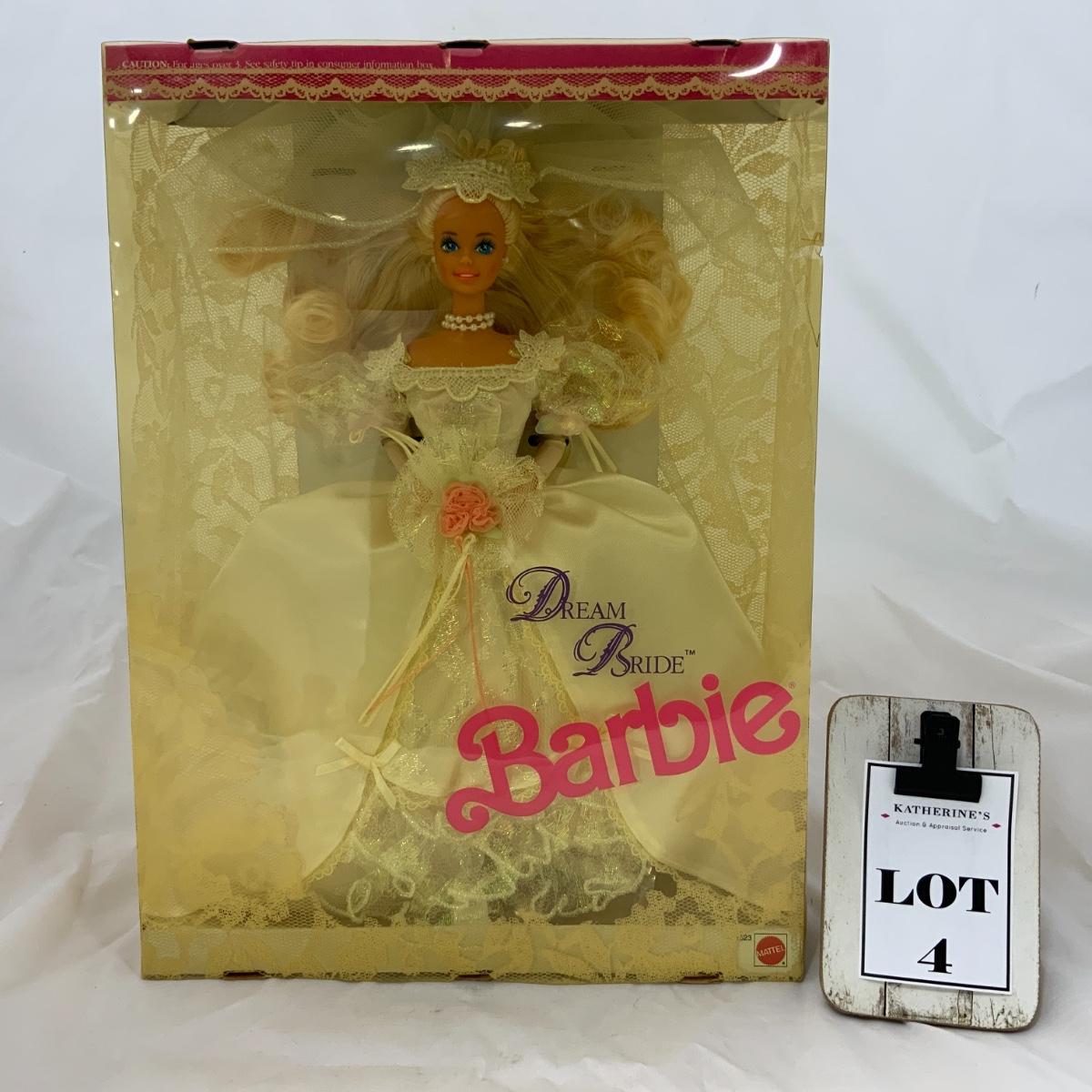Dream Bride Barbie in all her lacy beauty! New, In Box. Box plastic has yellowed over the years, and does have a crack, pictured. Please see photos for details and condition. !!! Proceeds from this auction will be donated to the NEW COMMUNITY SHELTER in Green Bay, Wisconsin. Please see Sale Description to the Left for more information. !!! ::: Shipping is available on this lot. If you require shipping you must let us know at the close of the auction. We will coordinate with you after the item has been won. Shipping fees will include insurance up to or exceeding the value of all items being mailed. If you have any questions regarding this lot please contact the auctioneer either via this website, by direct email or by phone. PICK UP TIMES and other important information can be found in the TERMS and DESCRIPTION of the auction. Please take a look for pertinent information. Thanks!