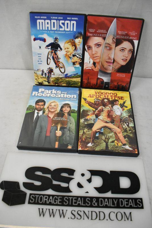 4 DVDs: Madison A Fast Friendship, The Nearest Human Being, Parks & Rec, & Voodoo Apocalypse. All in new condition, but Open