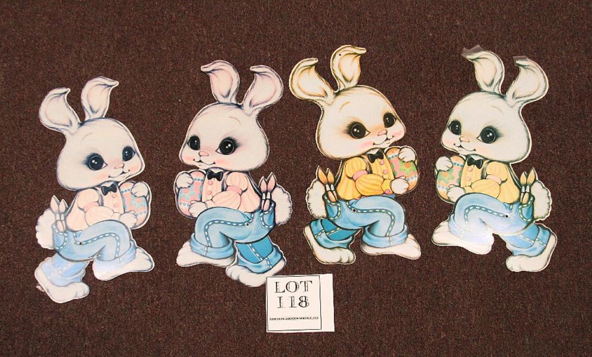 4 Easter Bunny Flats, Movable Legs, Beistle 1981