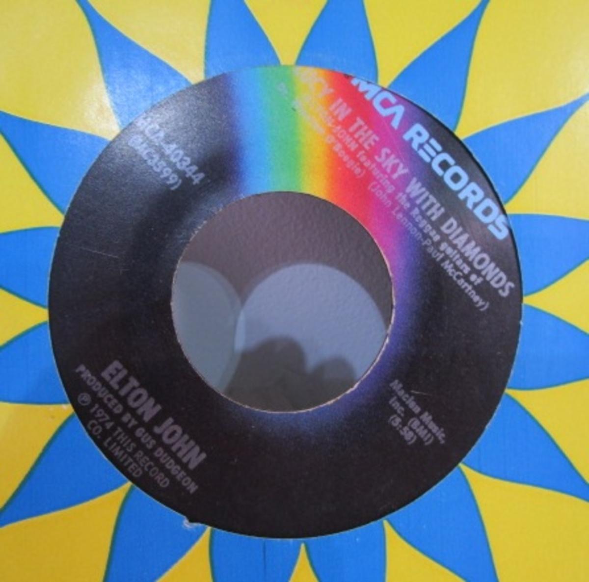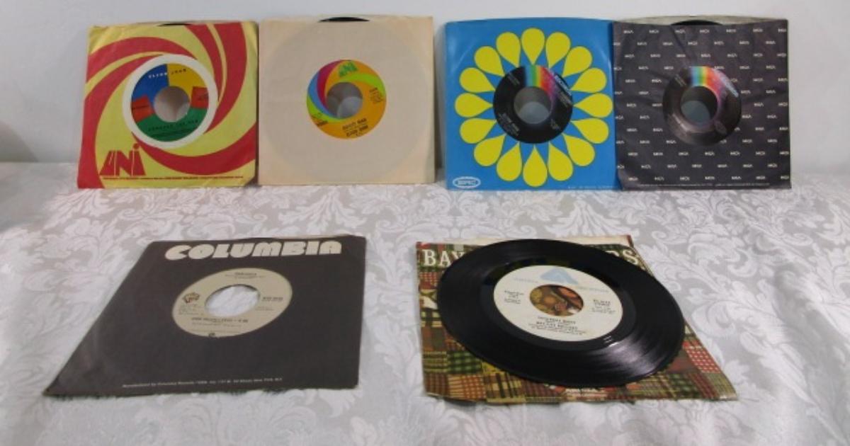 4 Elton John, 1 Ambrosia, 1 Bay City Rollers 45 RPM records