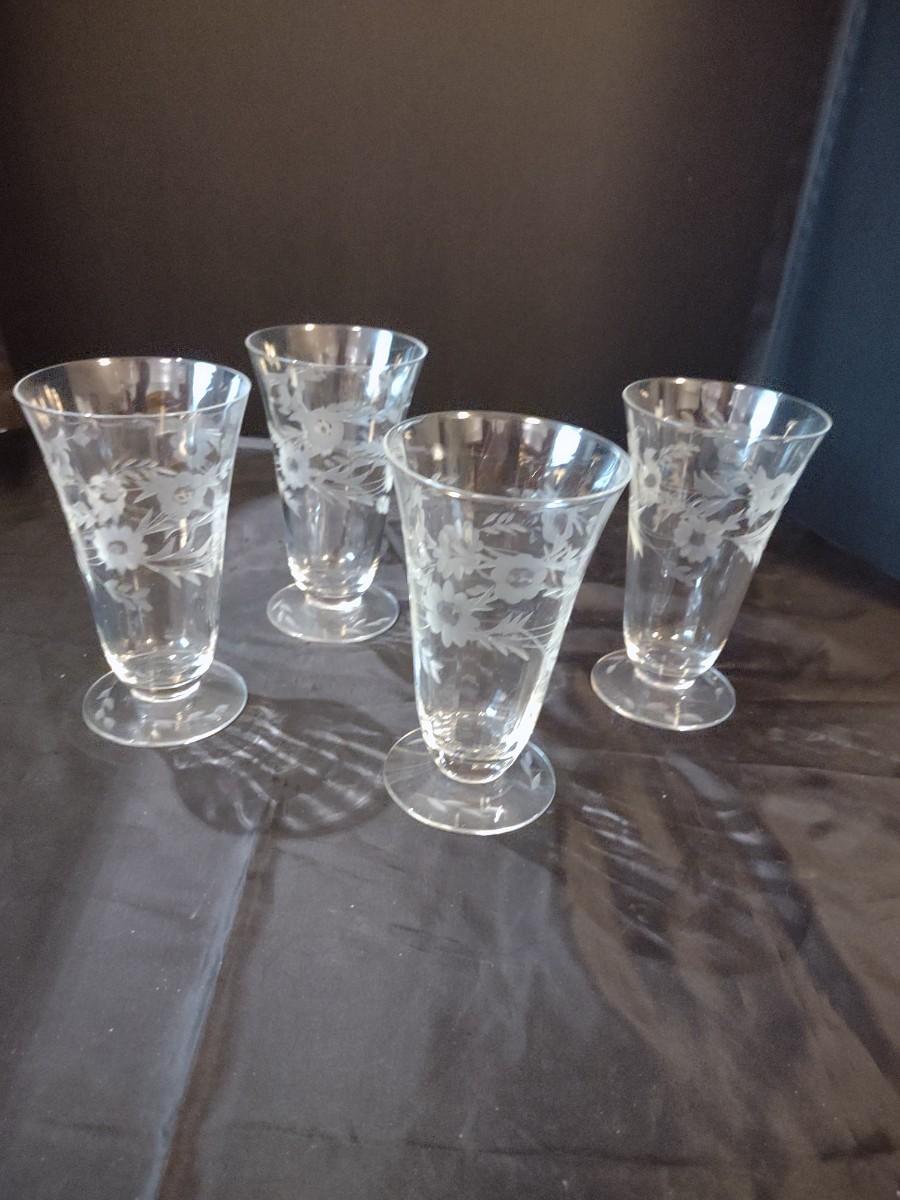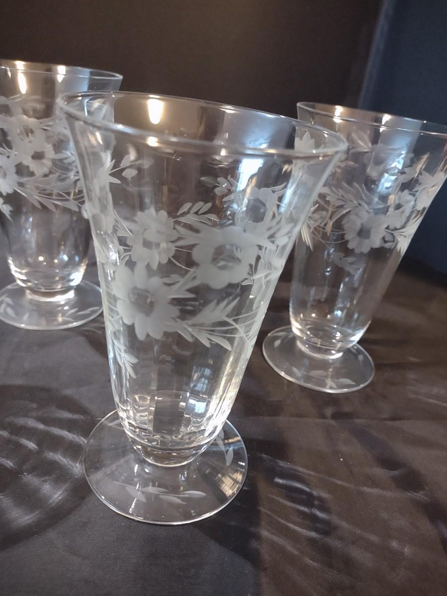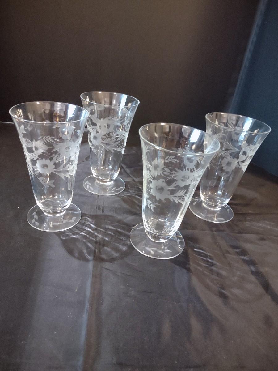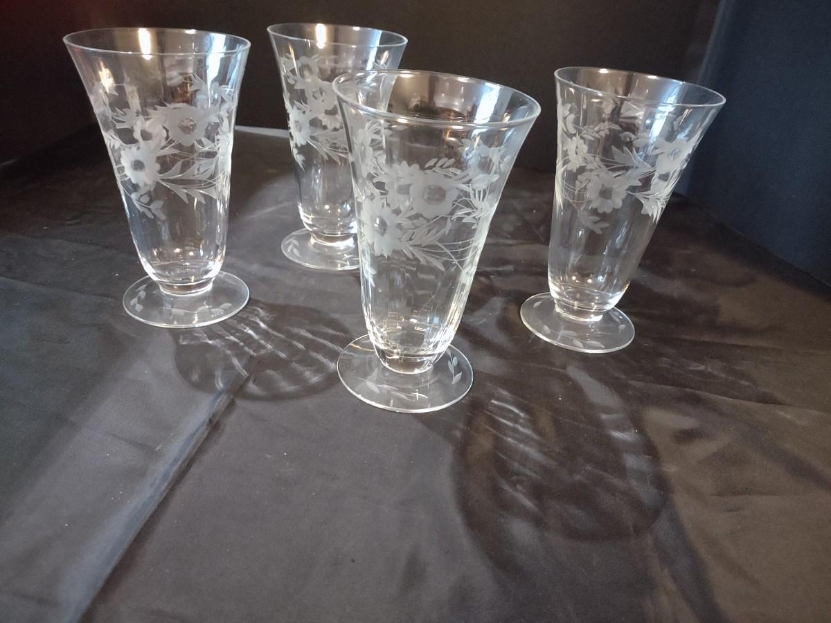4 ETCHED CRYSTAL STEMMED GLASSES