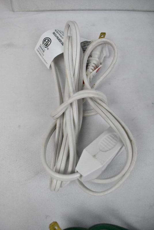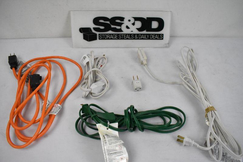 4 Extensions Cords (1 Orange 1 Green 2 White) and 1 plug adapter