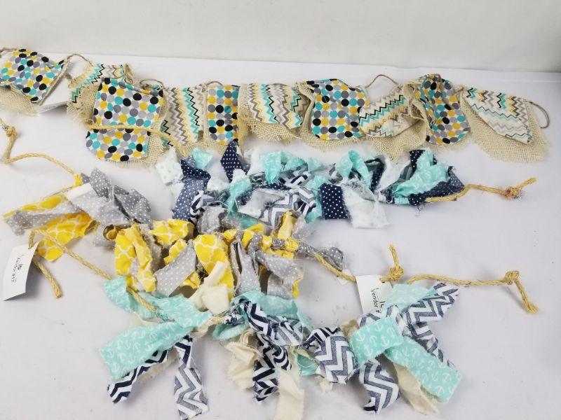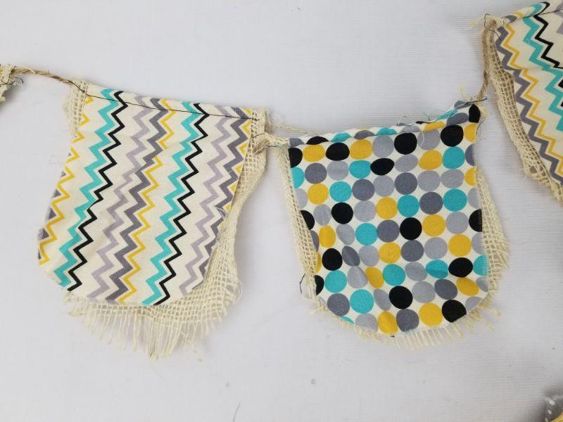 4 Fabric Party Banners - Navy Blue, Teal, Yellow, Gray & White