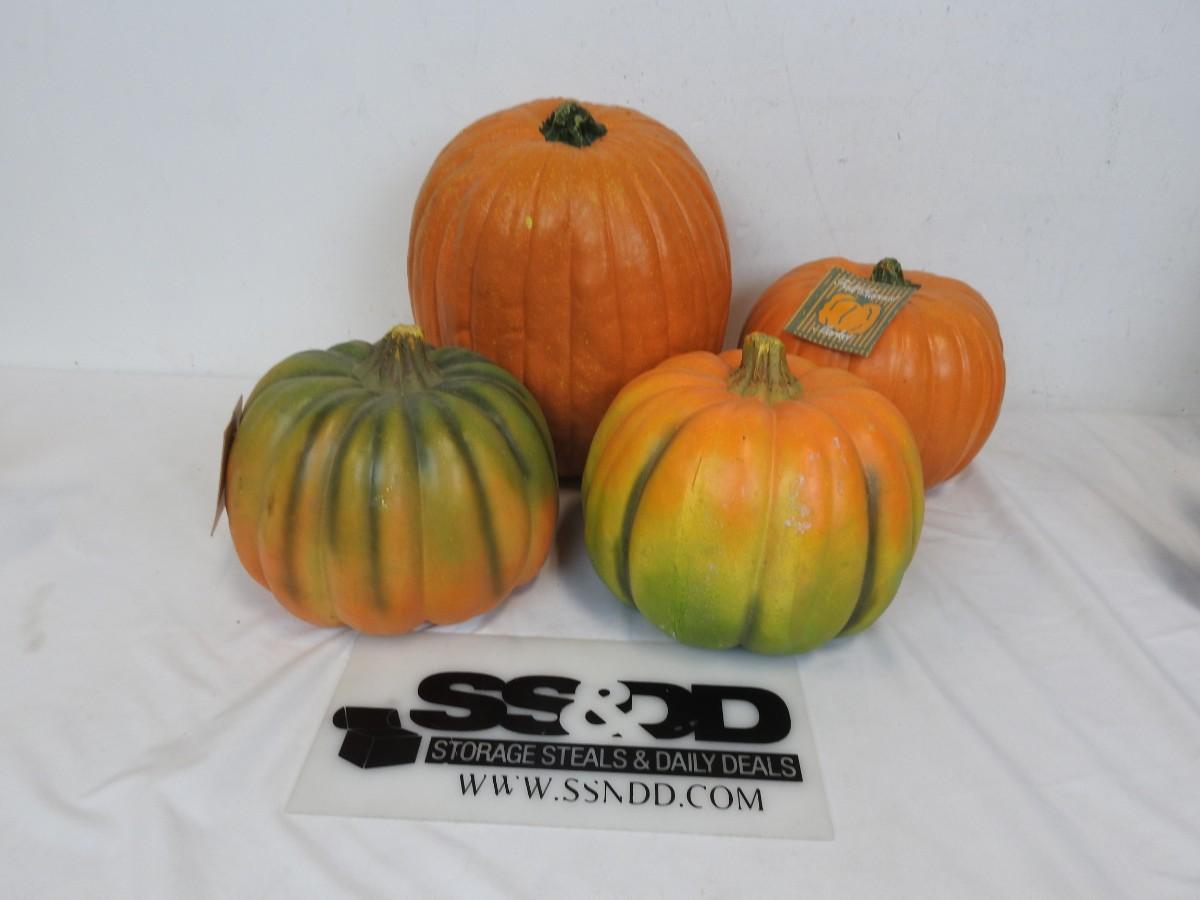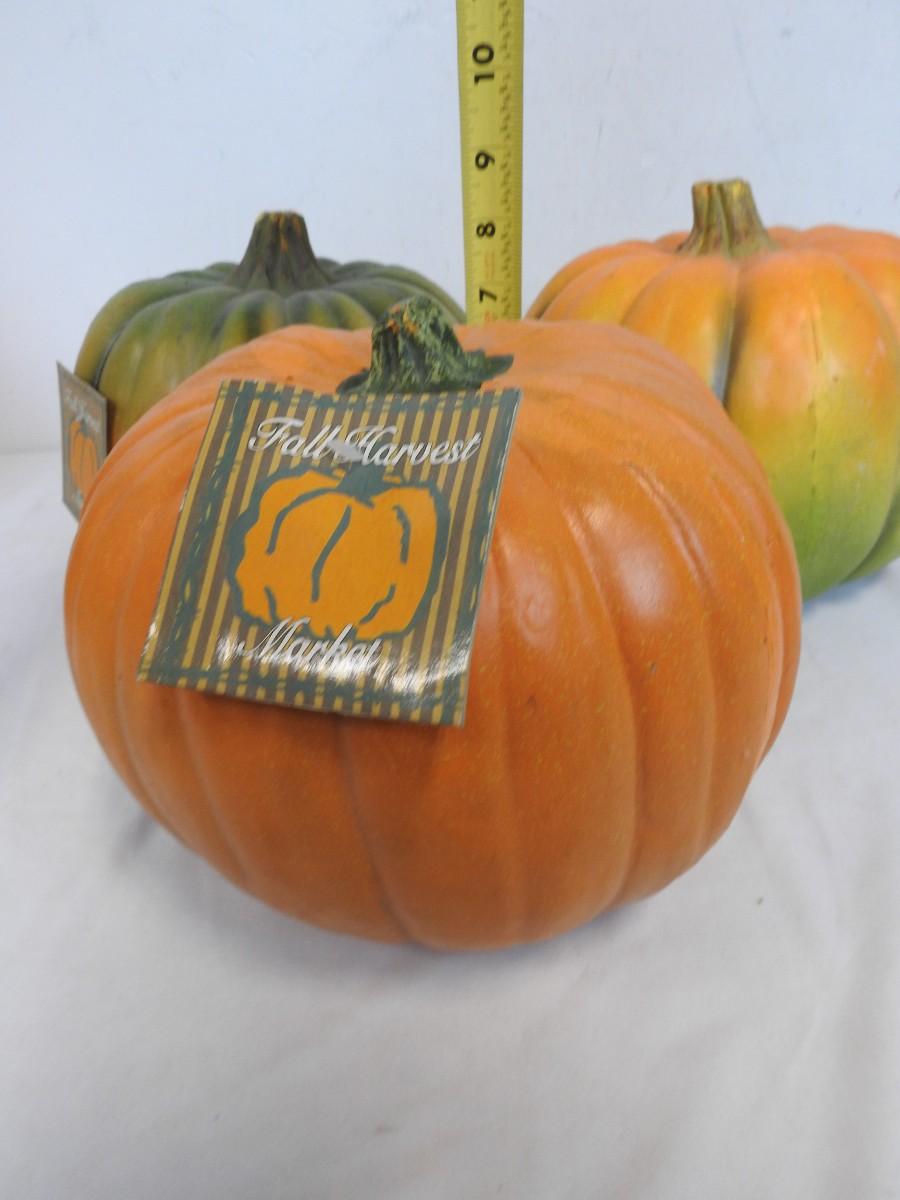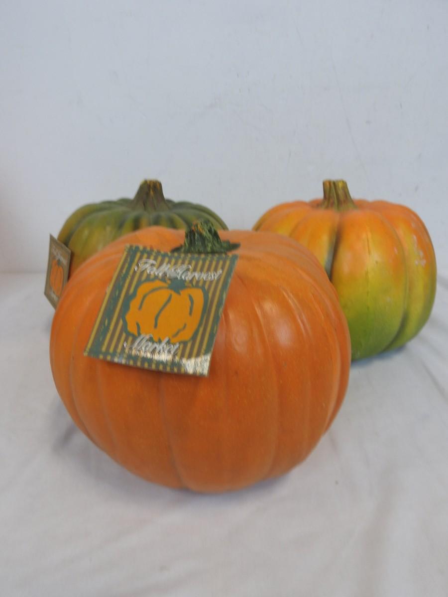 4 Faux Pumpkins, 1 Tall, 3 Medium Size, 2 w/Tags, Good Condition
