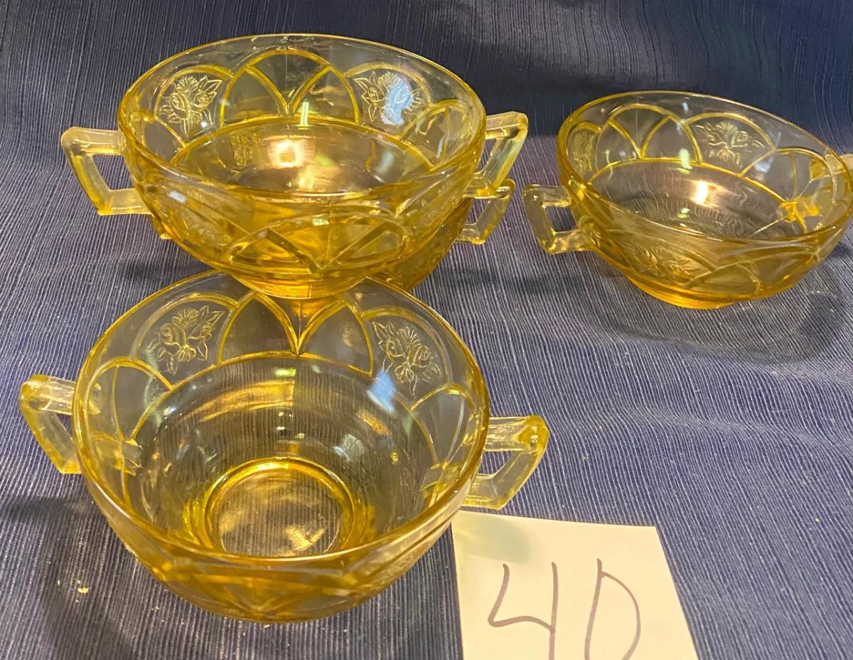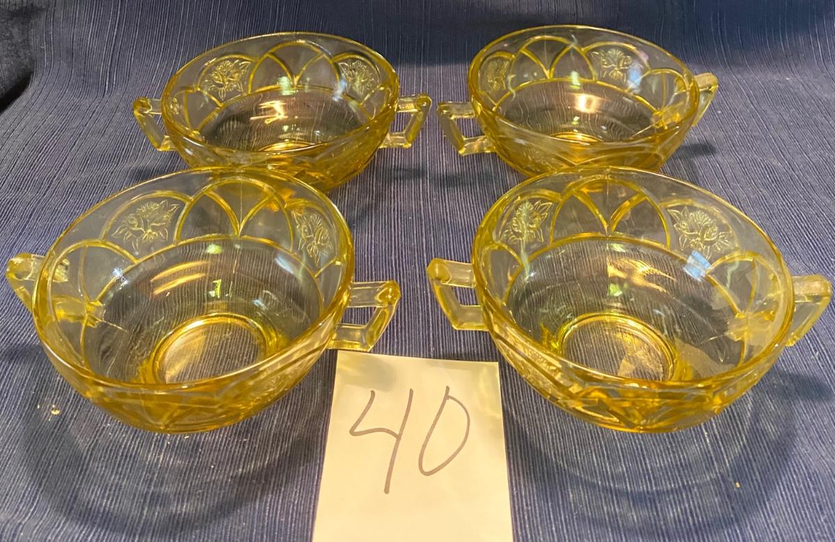 4 Federal Rosemary Amber Double Handled Soup Bowls