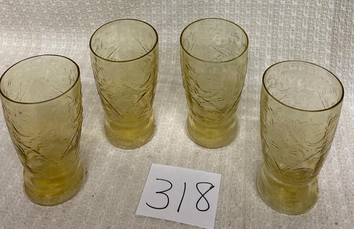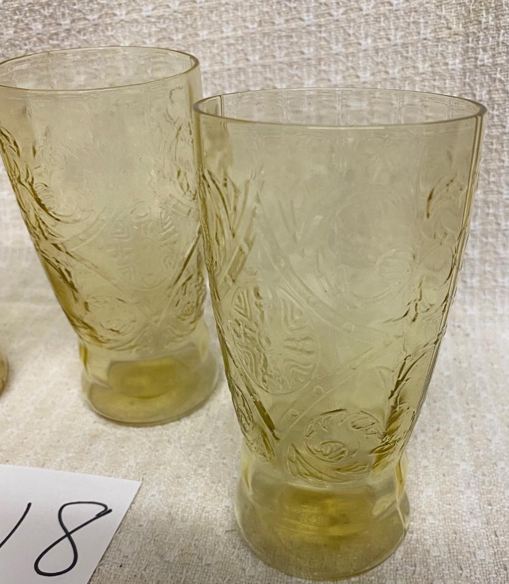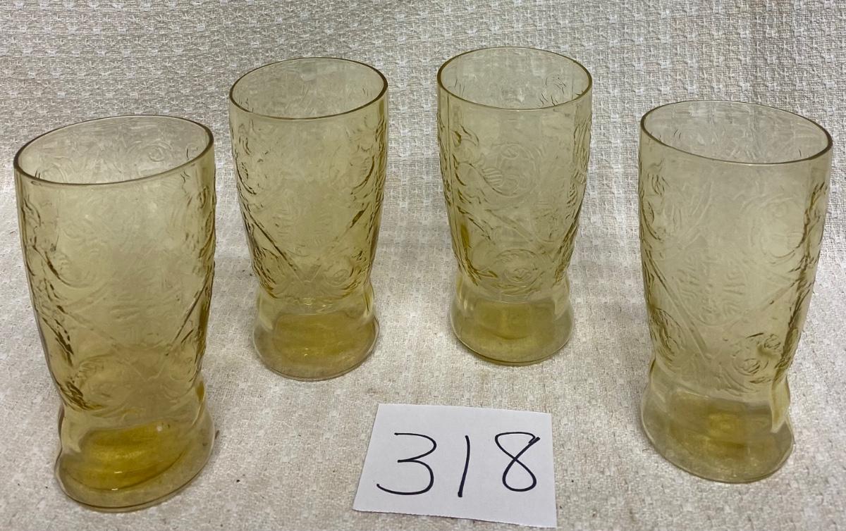 4 Federal Vintage Depression Amber Madrid Glasses
