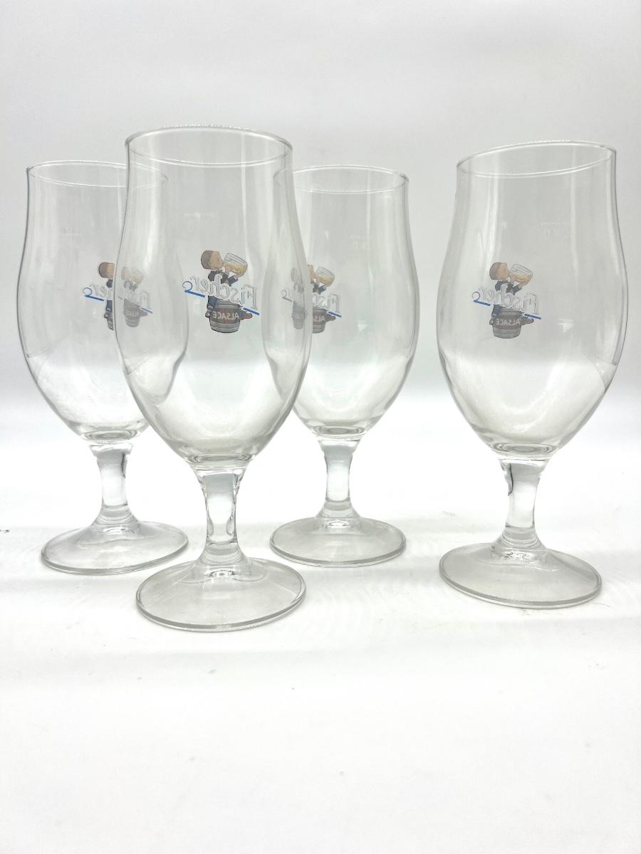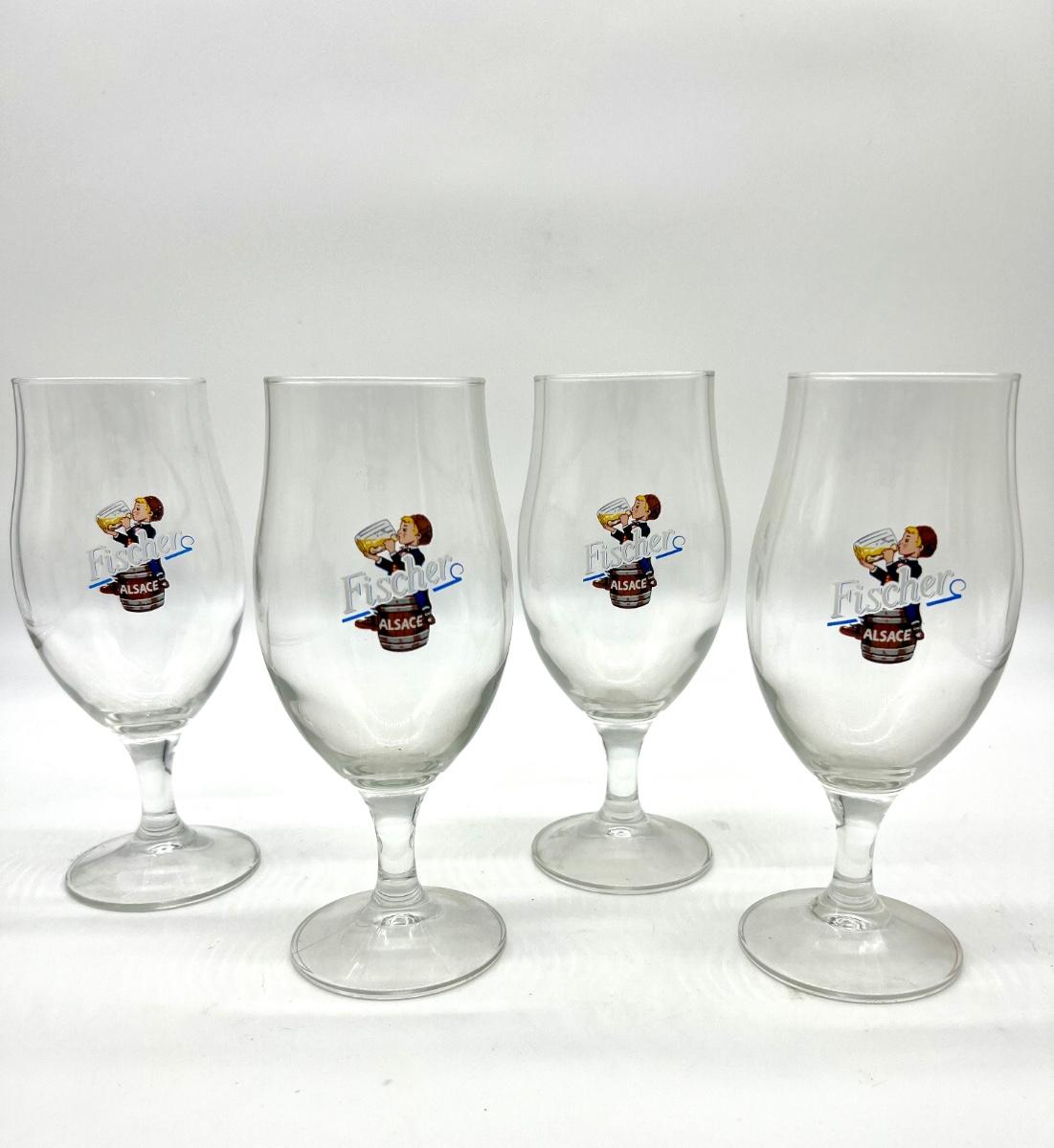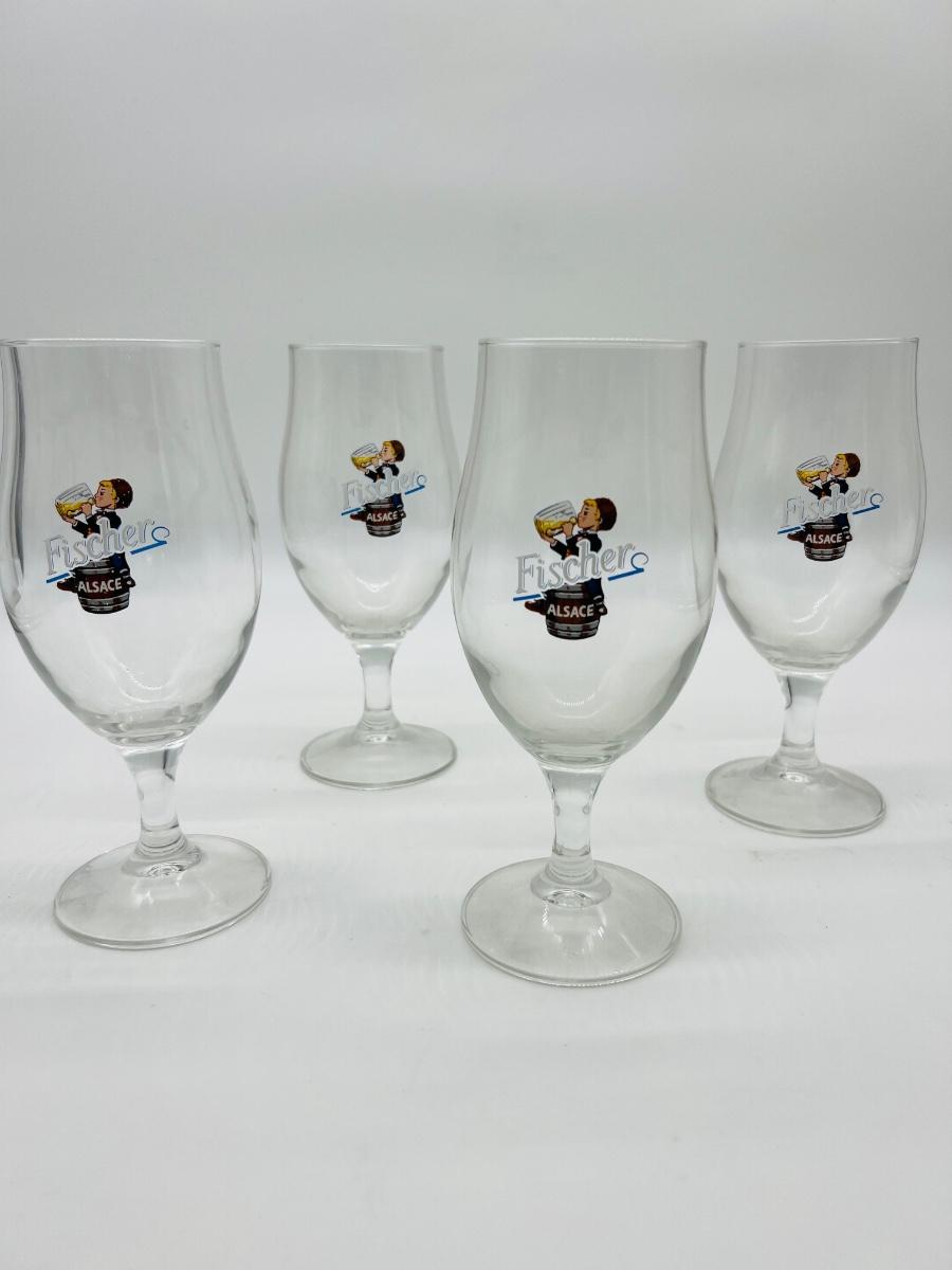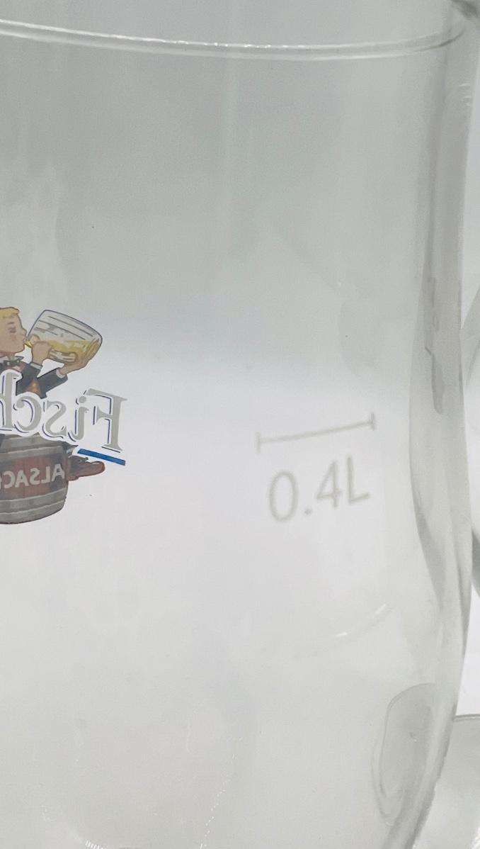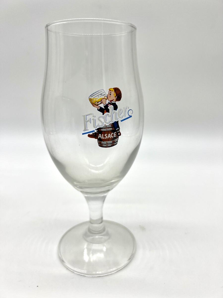 French Pilsener stemmed beer glass Fischer Brewery Alsace France 0.40 ltr measure 8 inches tall.