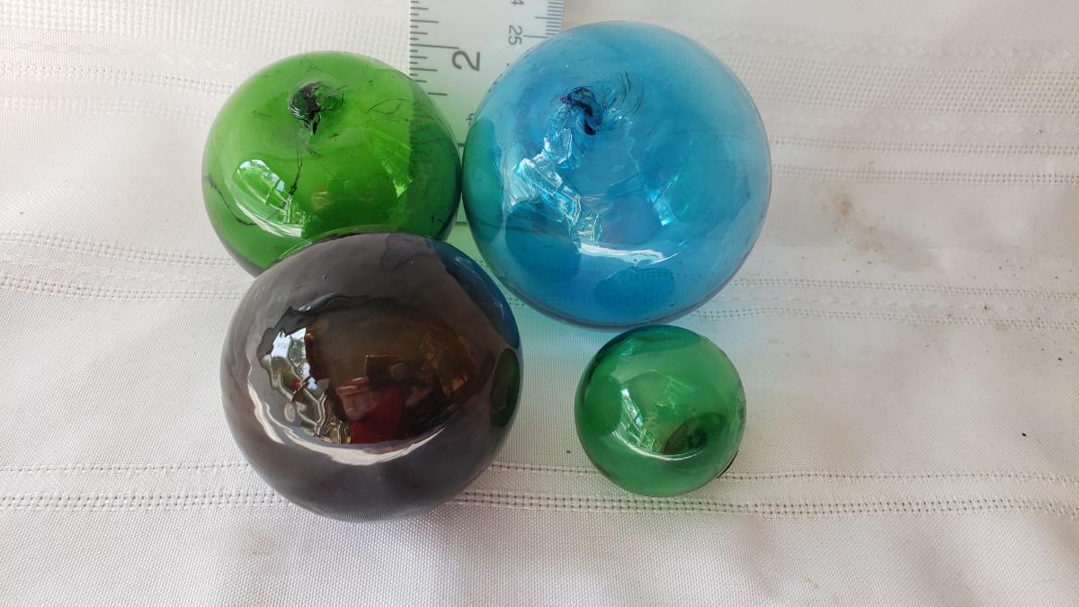 Four small fishing net floats
