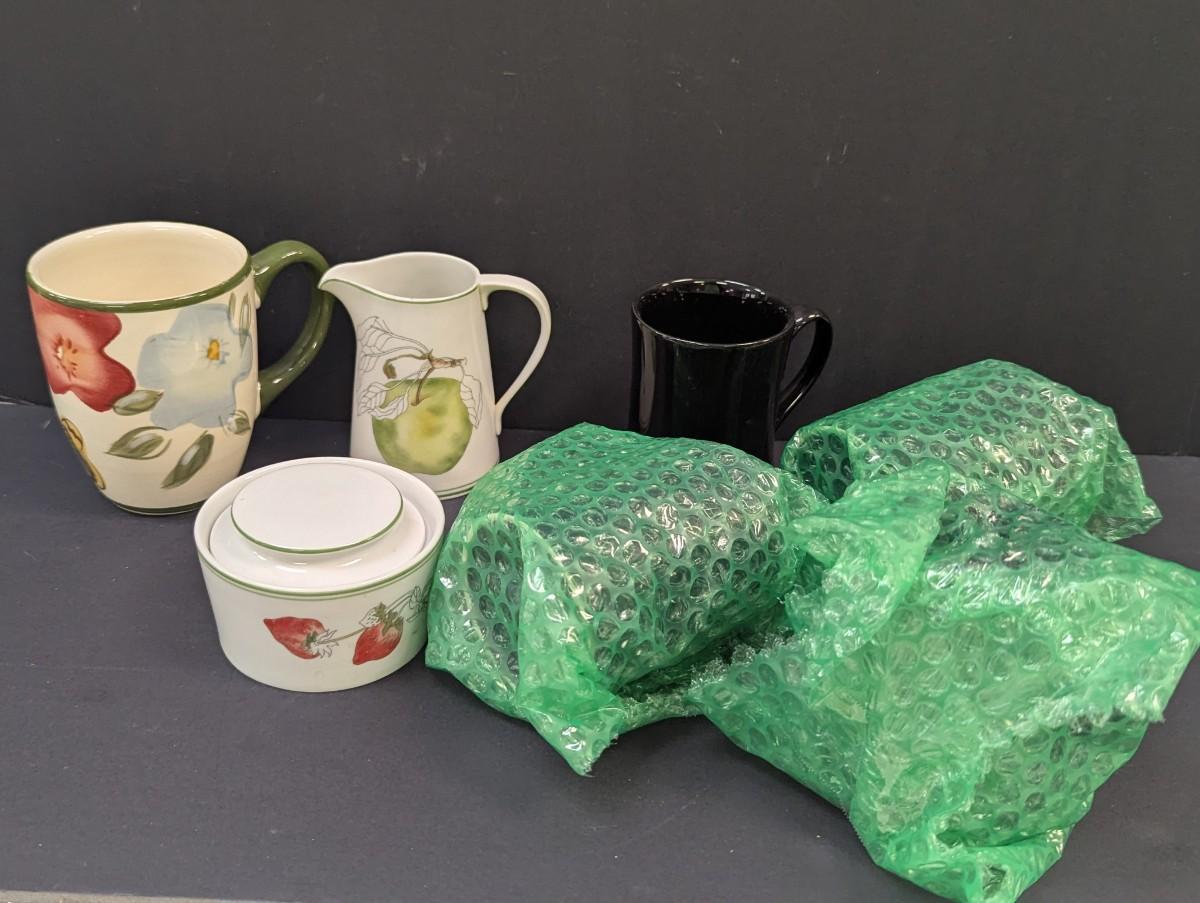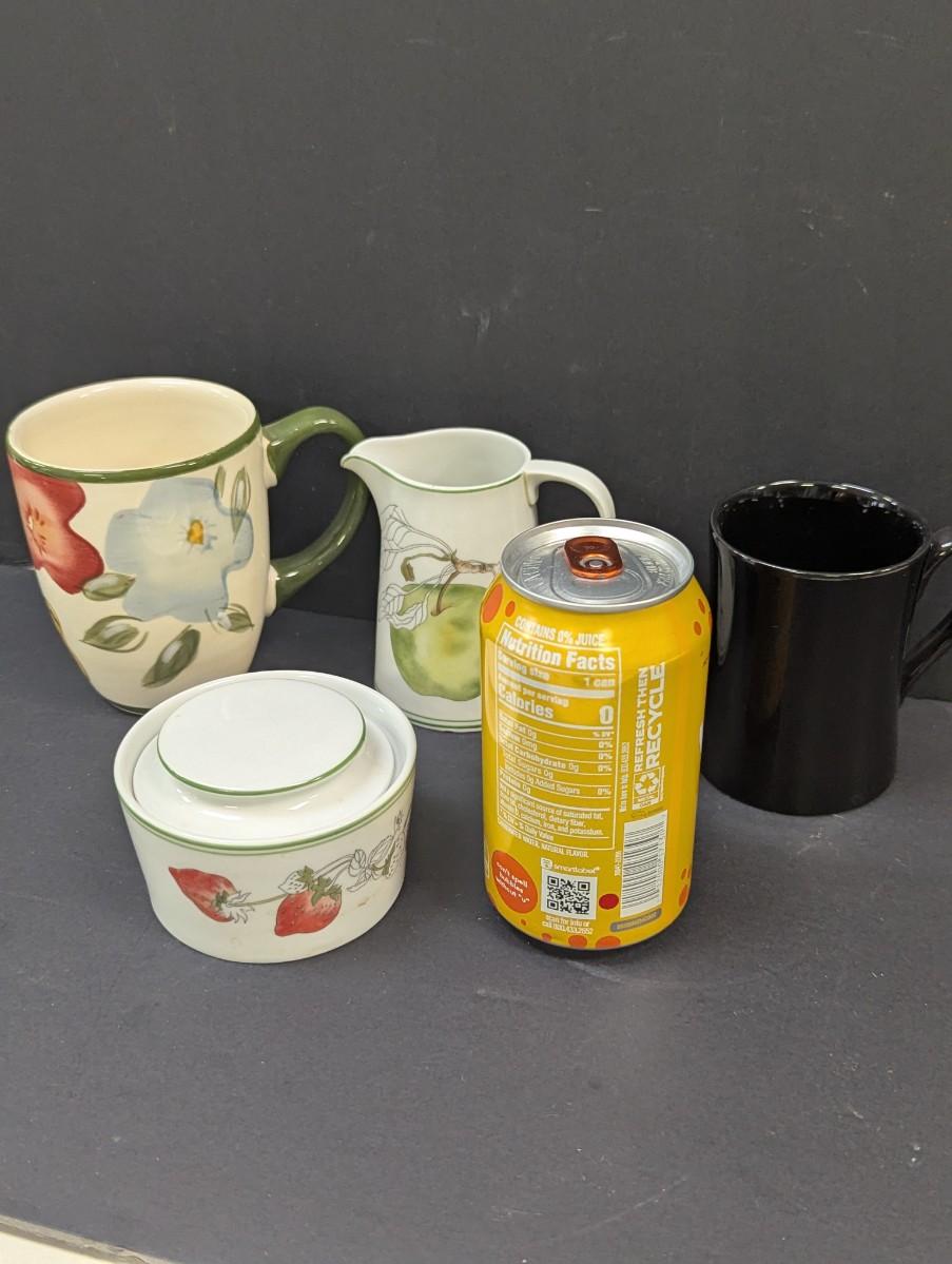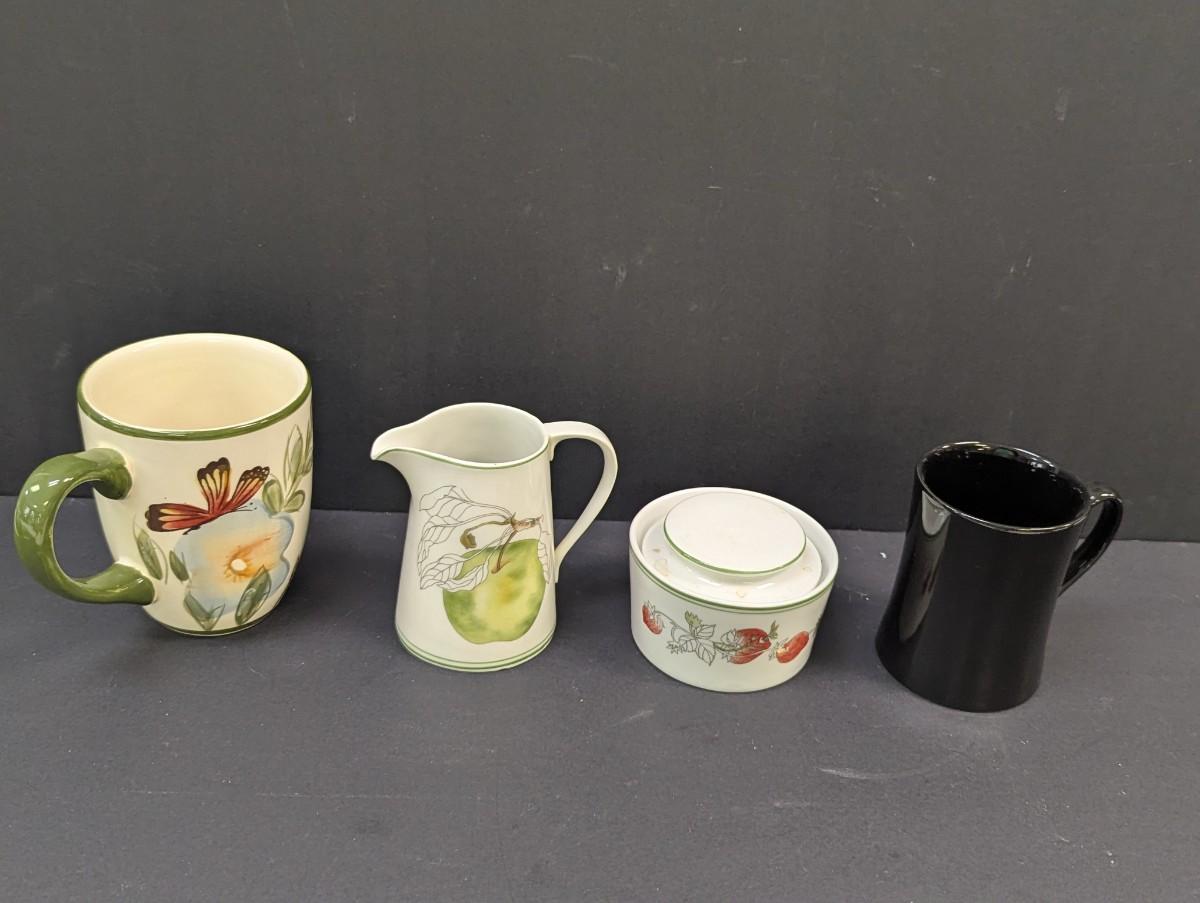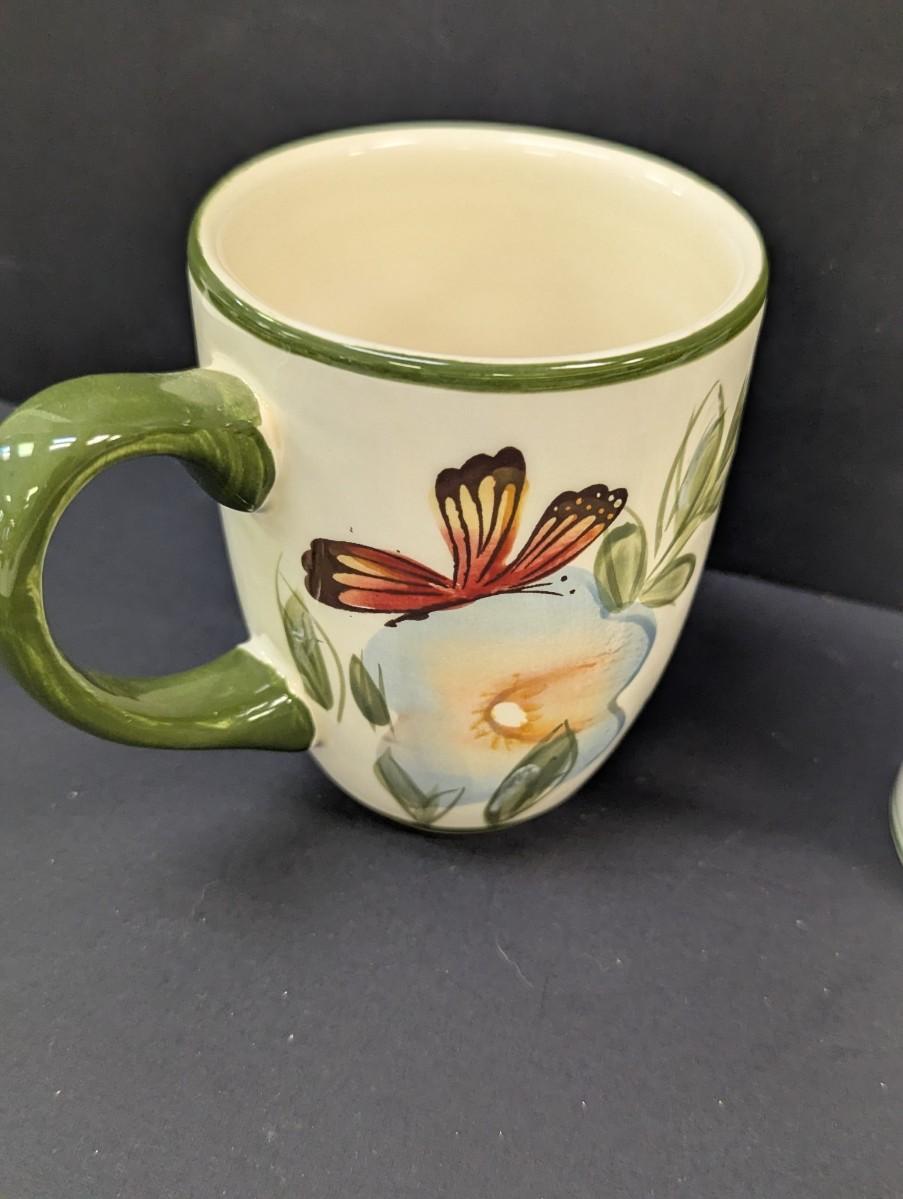 4 - Fitz And Floyd Mugs - Pfaltzgraff "Butterfly" Cup - Black Spal Green Apple