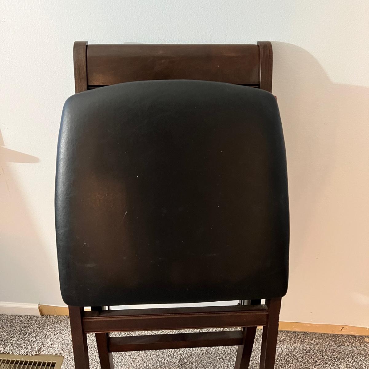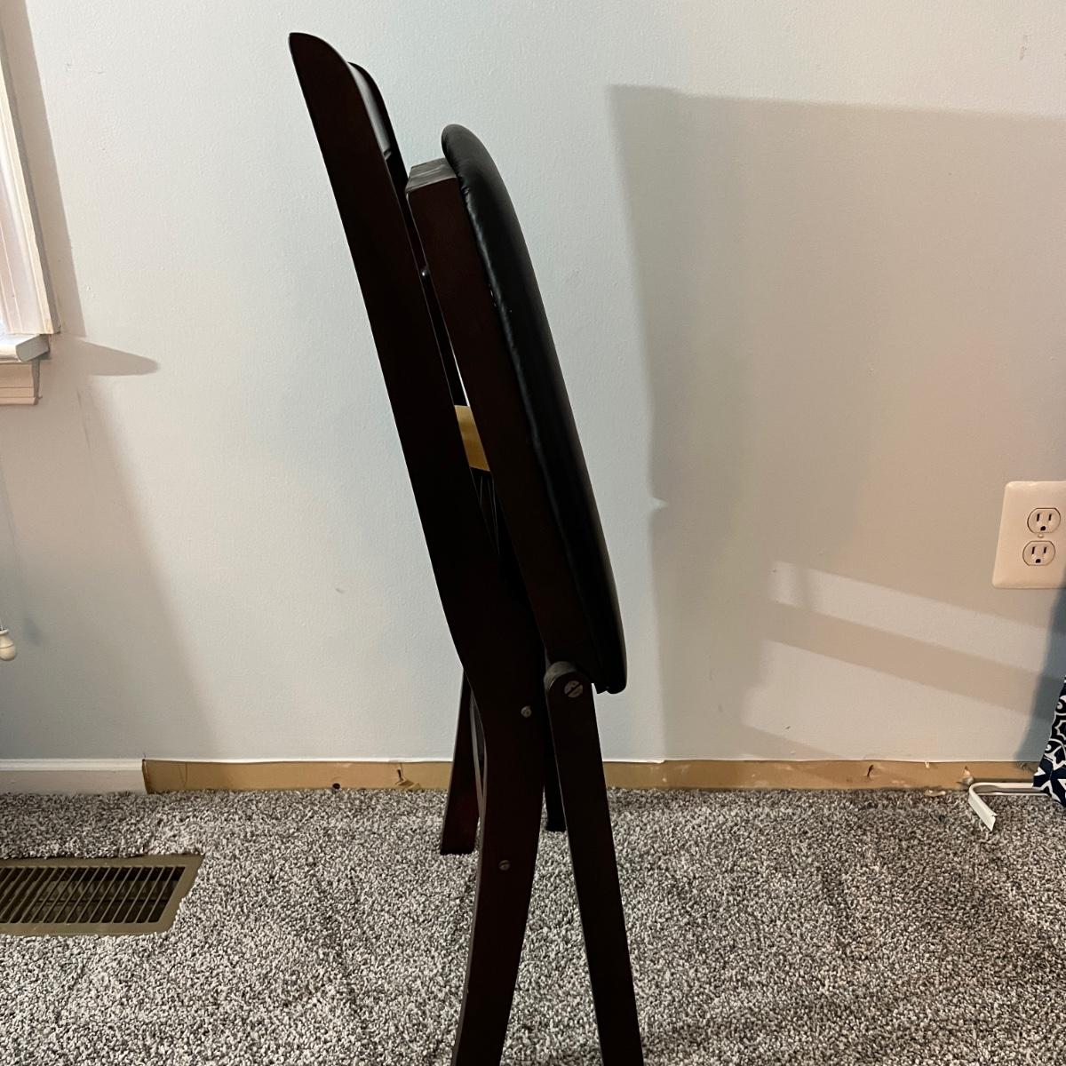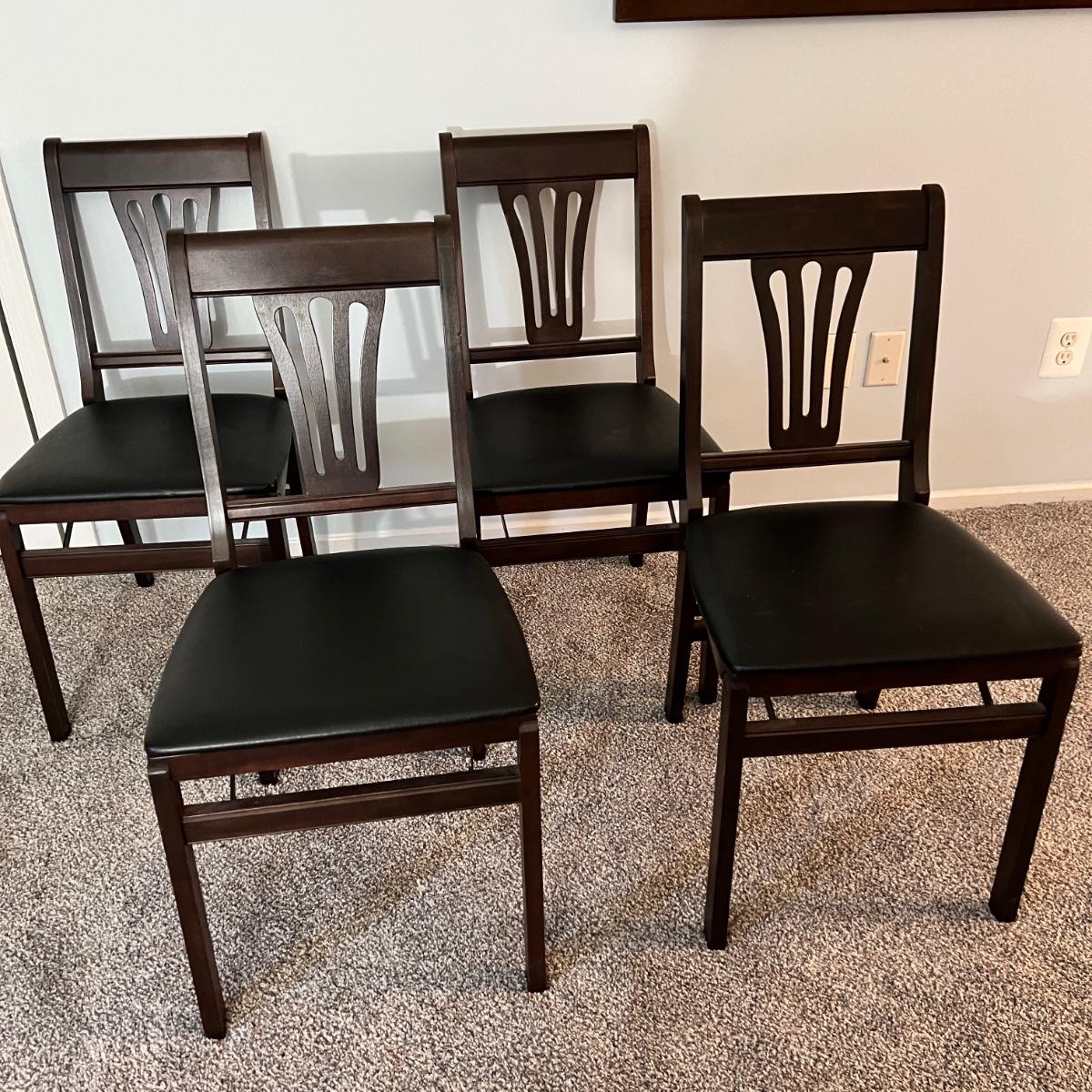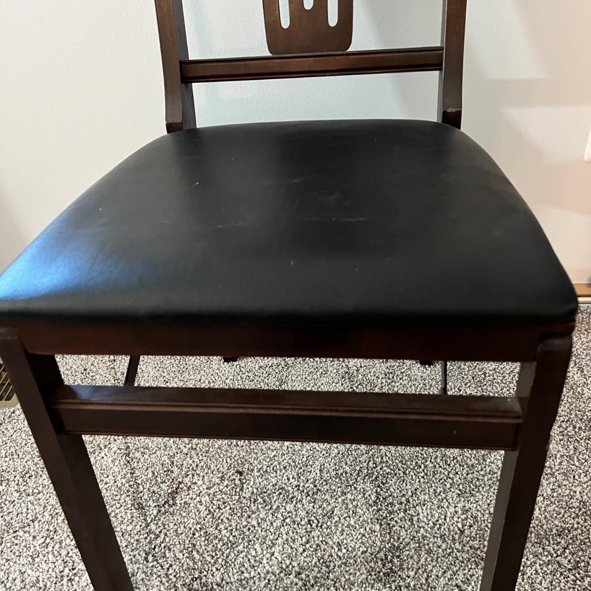 Just in time for the upcoming holidays! Constructed of solid hardwood with a steel folding mechanism and faux leather padded upholstered seats. In good used condition, they do show some slight wear. NOTE: PICK UP ONLY IN DUNKIRK MD.