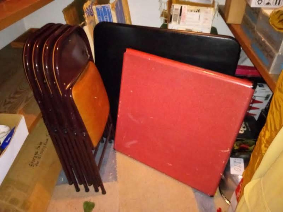 4 FOLDING CHAIRS AND 2 FOLDING TABLES