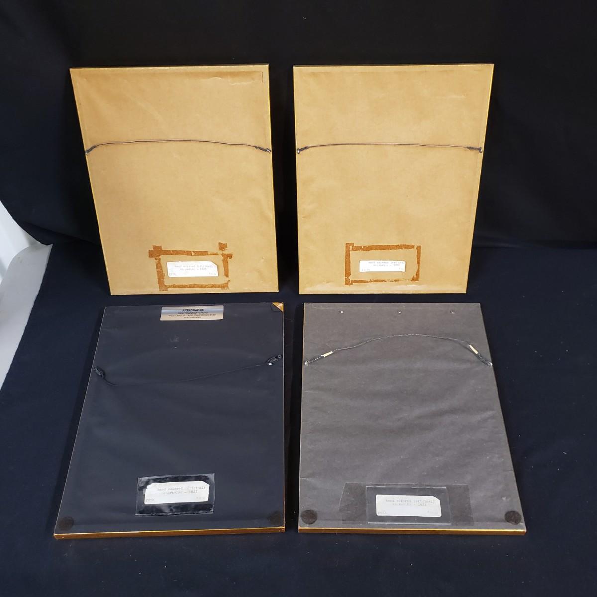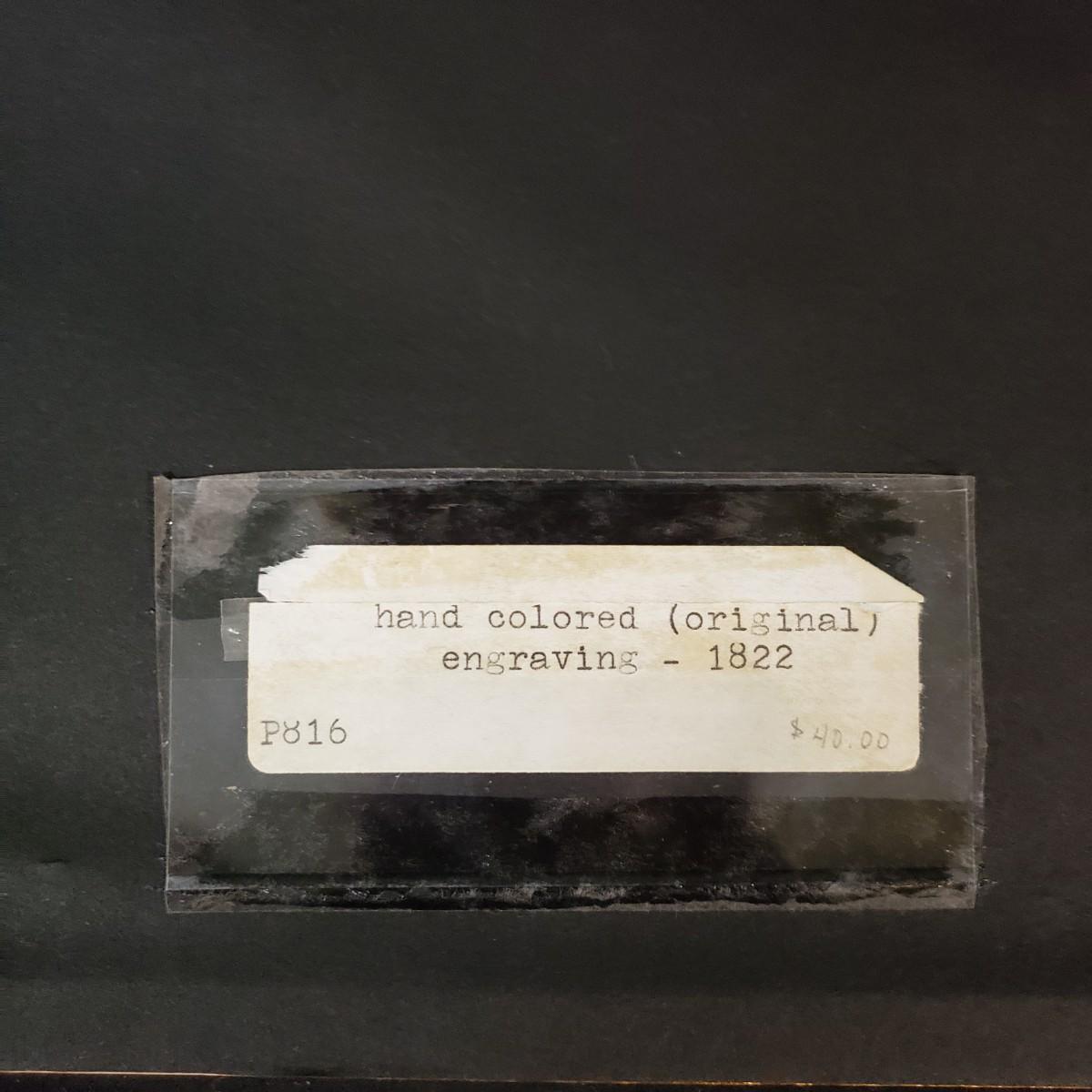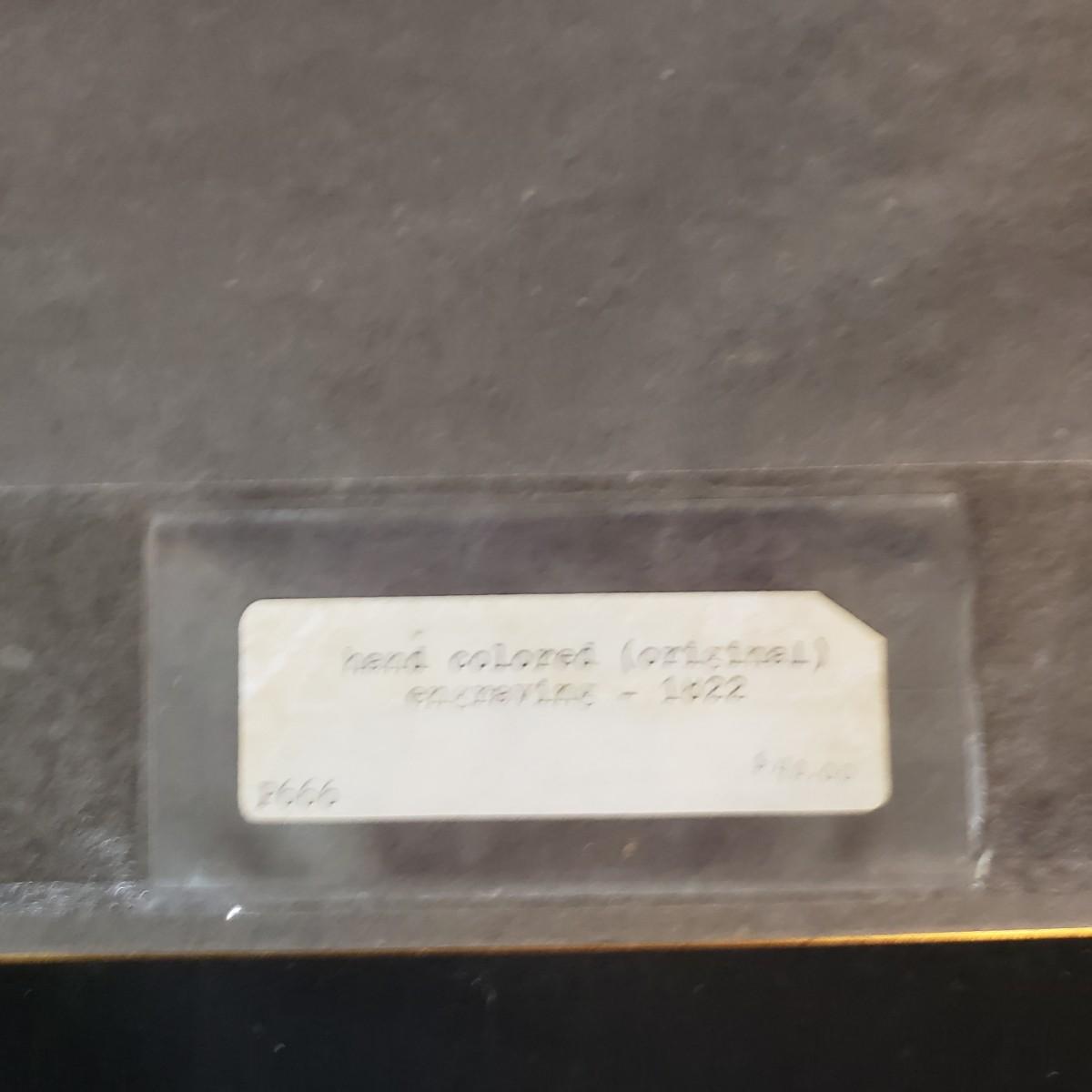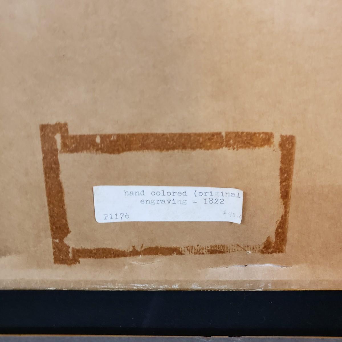 These matching frames with matting contain hand colored pictures of Costumes of Parisians measuring approximately 10.5"x13". They have 1822 and 1823 written on the front. The pictures appear to be in good condition with no chips. The pictures are old and have some discoloring on the paper as seen in the pictures.