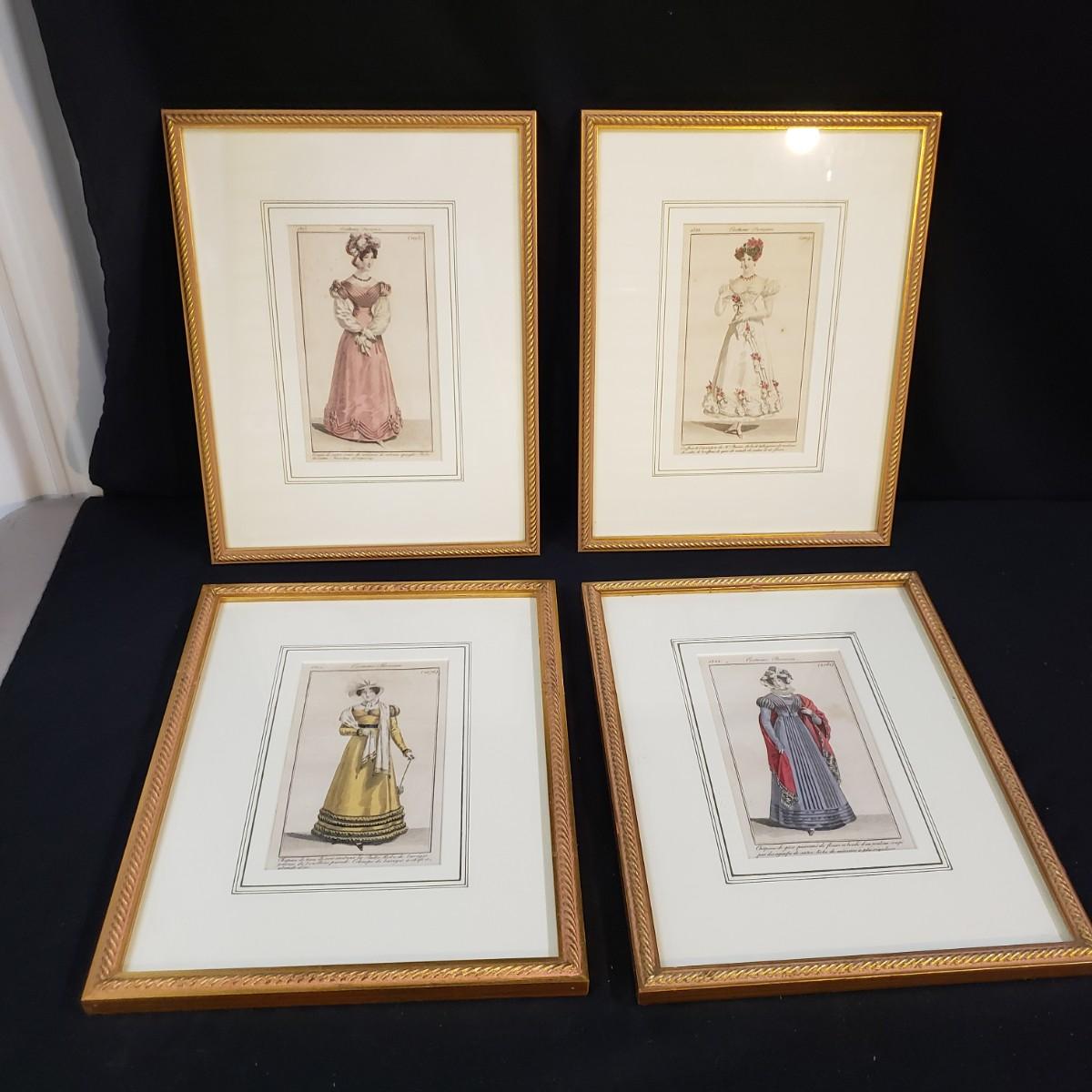 4 French Hand Colored "Costume Parisien" Framed Pictures (C-D-KD)
