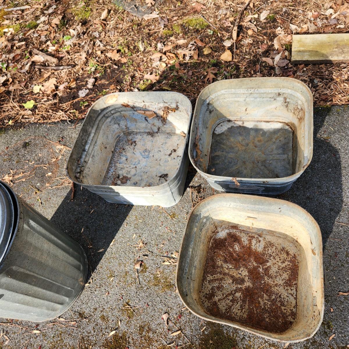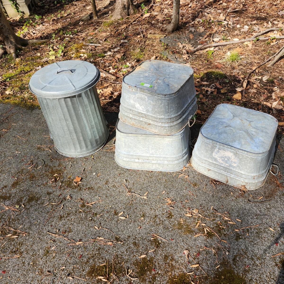 4 Galvanized Can & Tubs 1 Can w Lid 3 Square Tubs