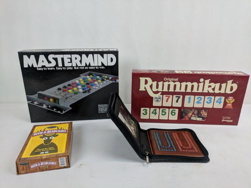 4 Games, Mastermind, Deer in the Headlights, Rummikub, Cribbage - Complete