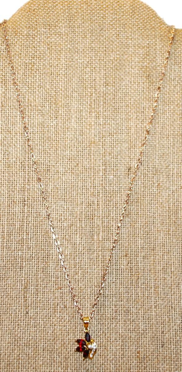 4 Garnets & Clear Stones Accents PENDANT (1" x ½") on a Rose Gold Chain Necklace 18" L