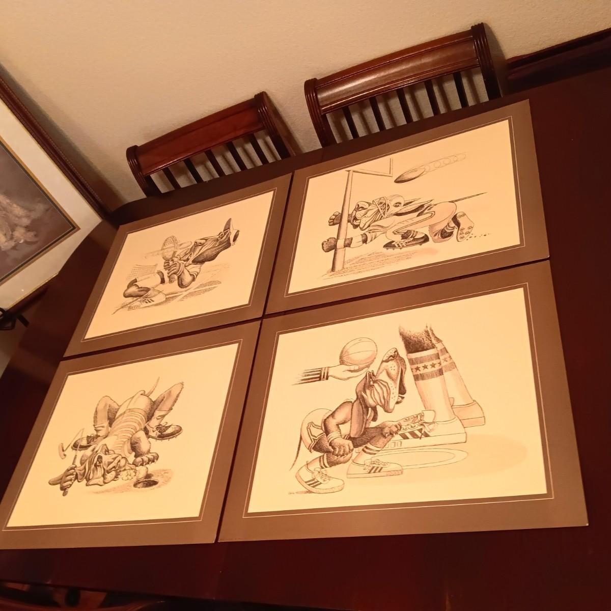 4 GARY PATTERSON STYLE PRINTS WITH DOGS PLAYING SPORTS