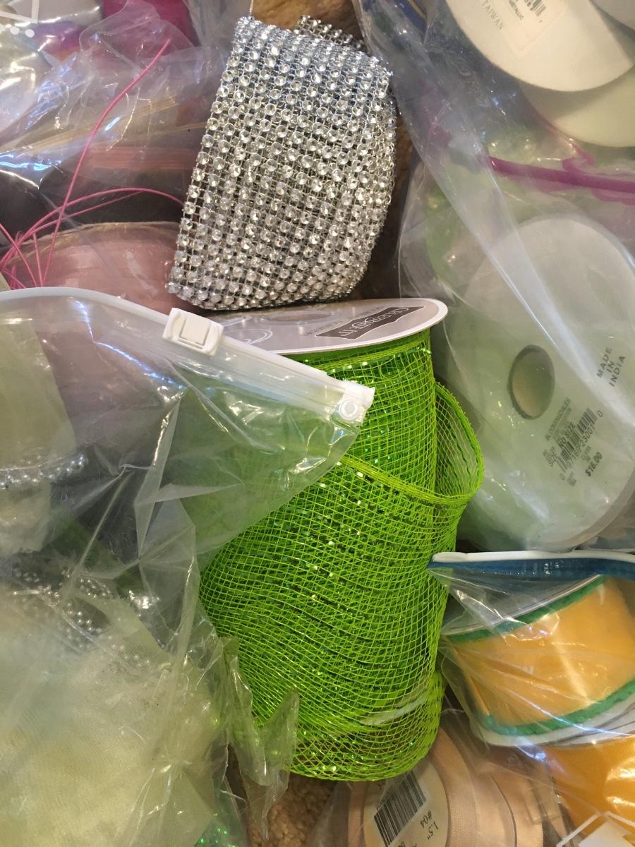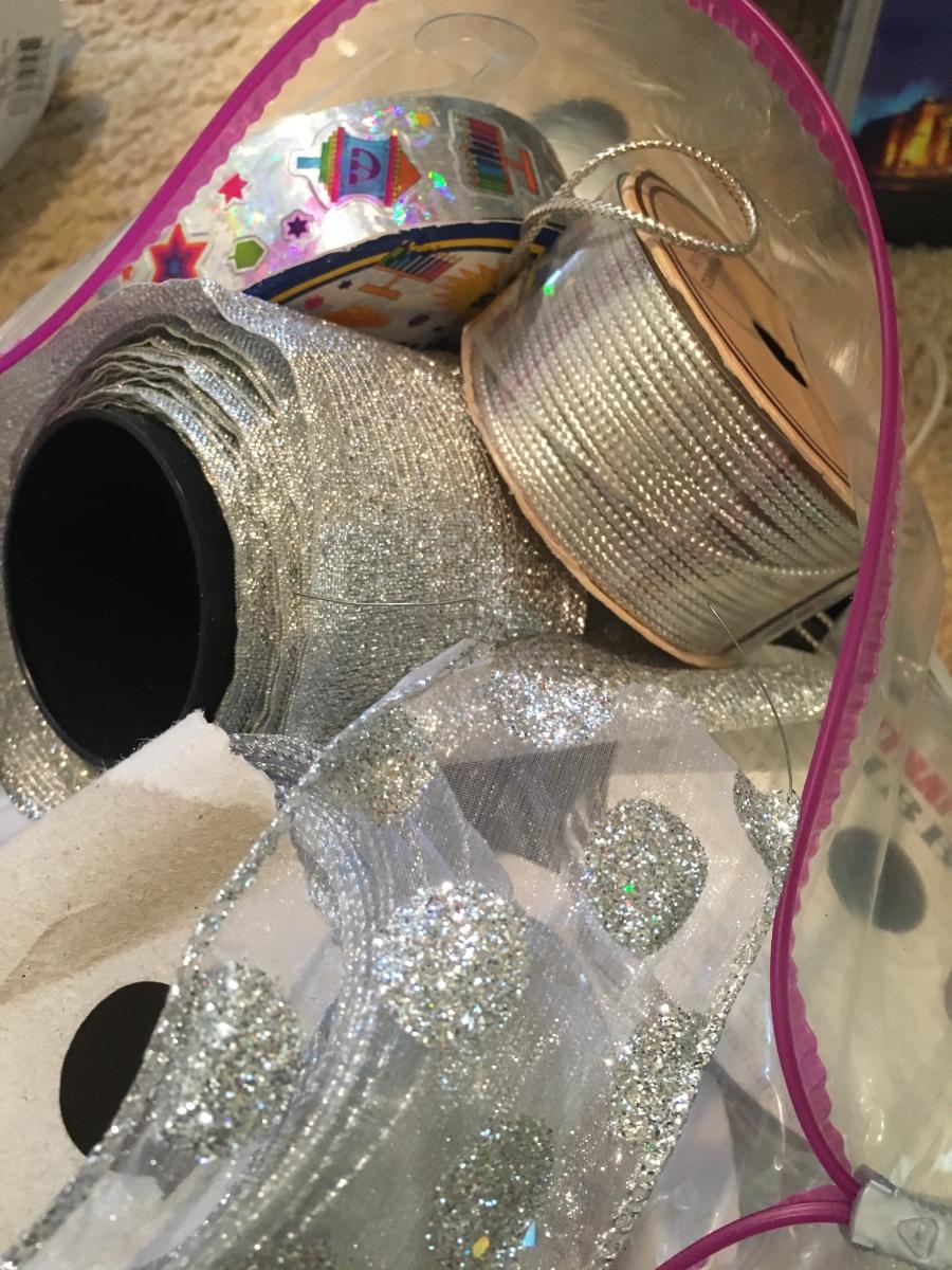 colorful ribbon ncludes metallic, cloth and rhinestone look