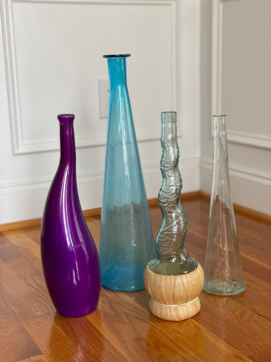4 glass bottles various styles and colors