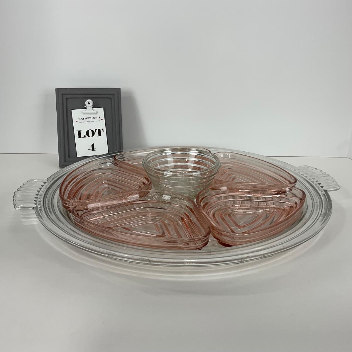 -4- GLASSWARE | Manhattan Anchor Hocking Pink | Relish Insert Set