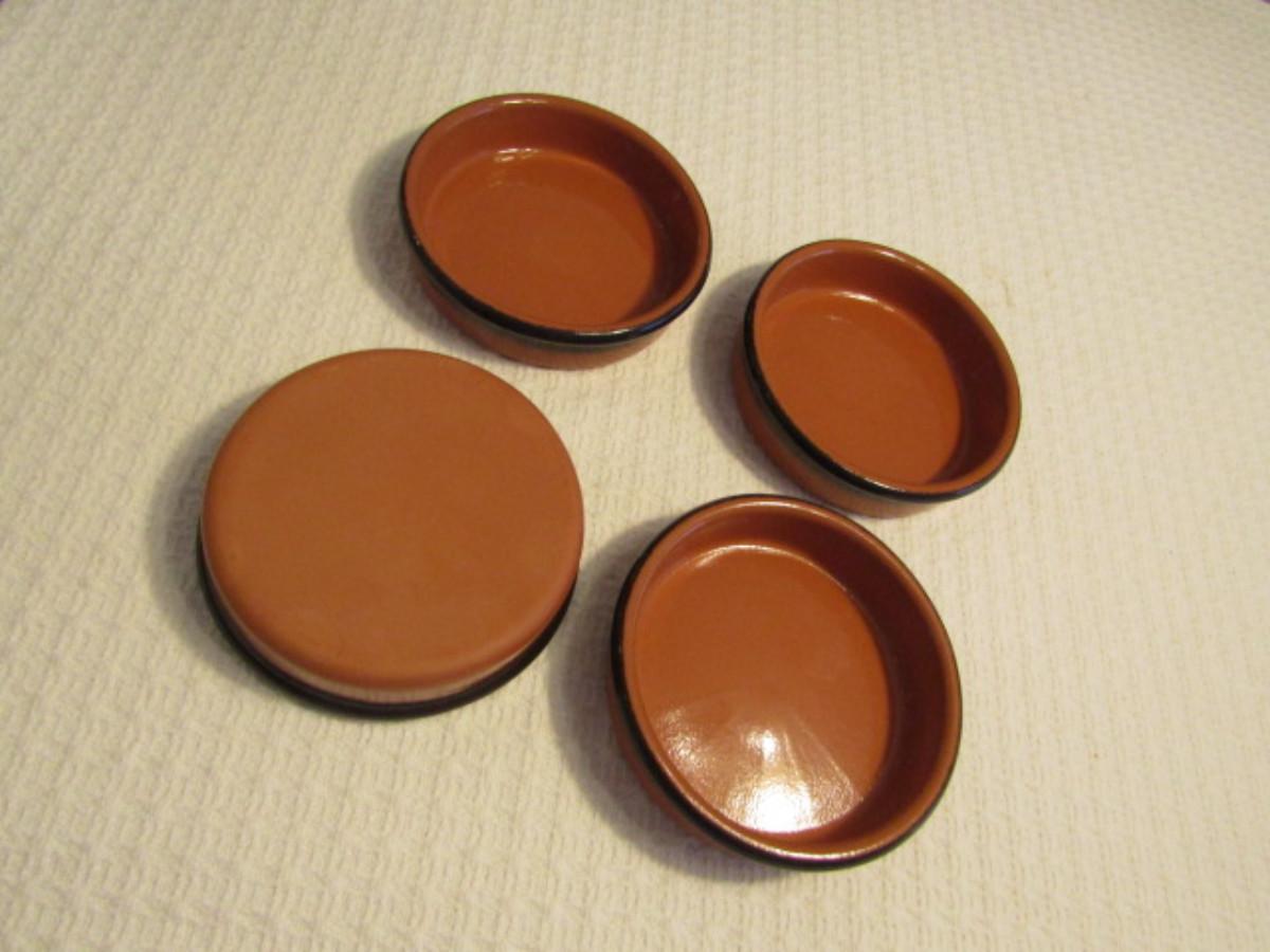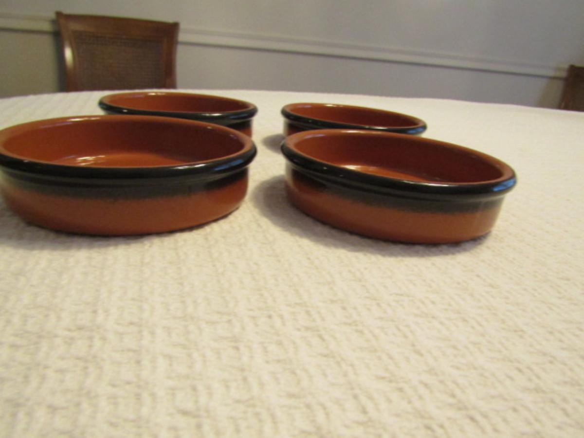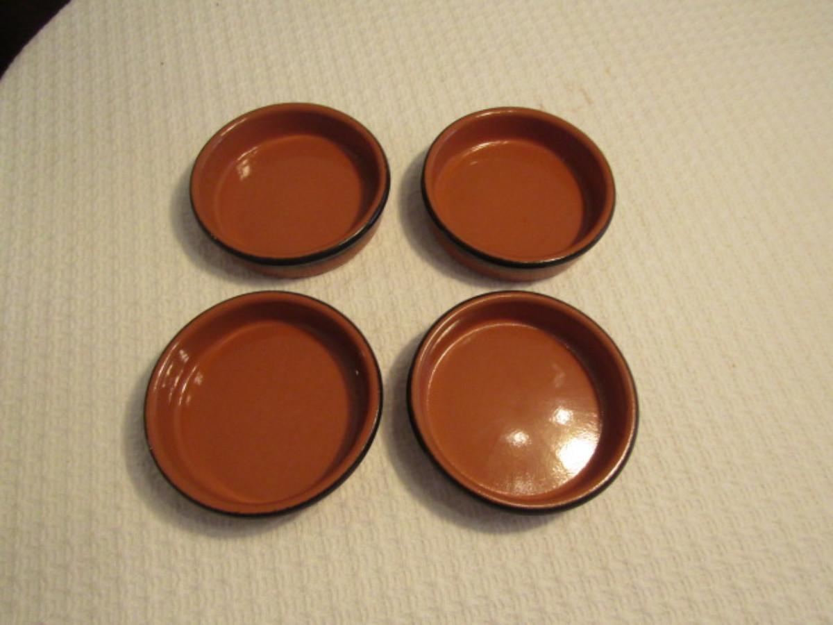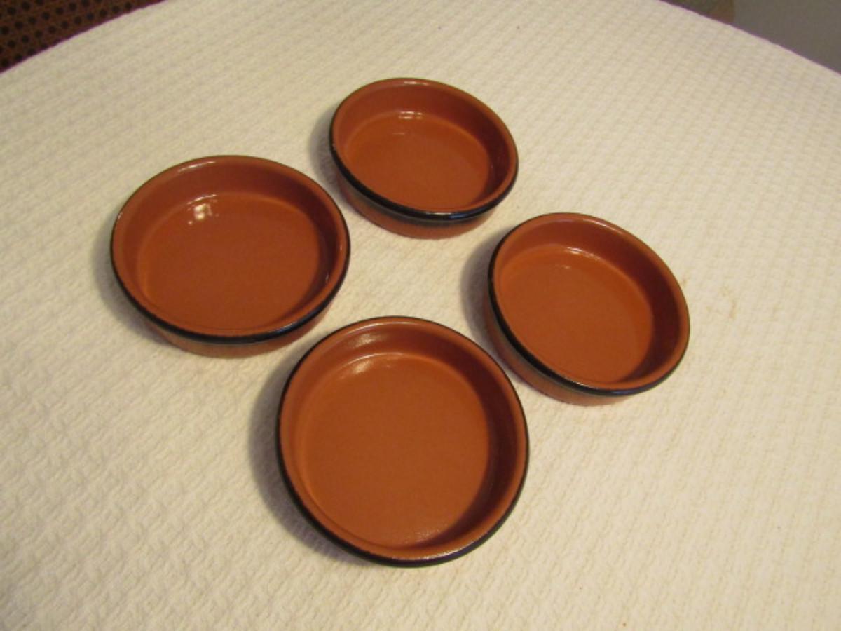 4 Glazed Terra Cotta Individual Creme Brulee Flan Tapas Dishes