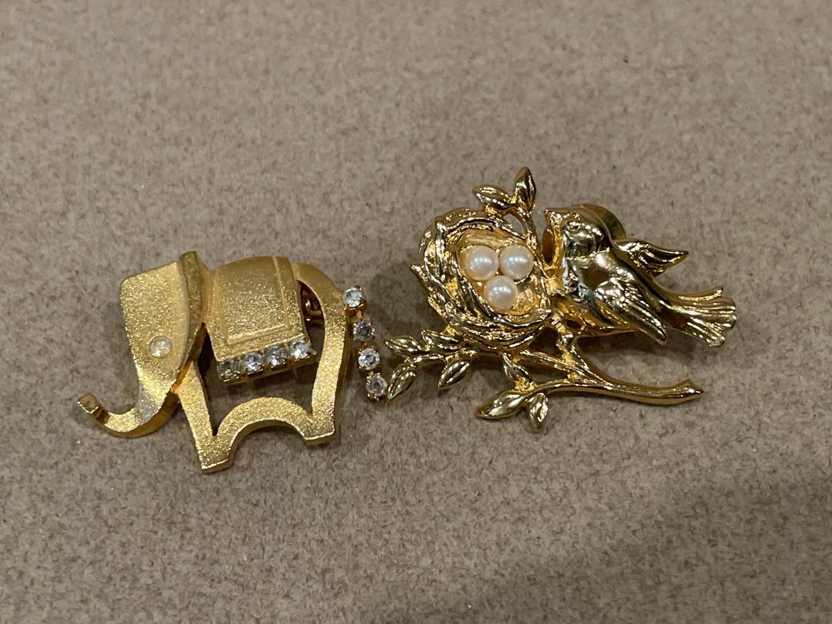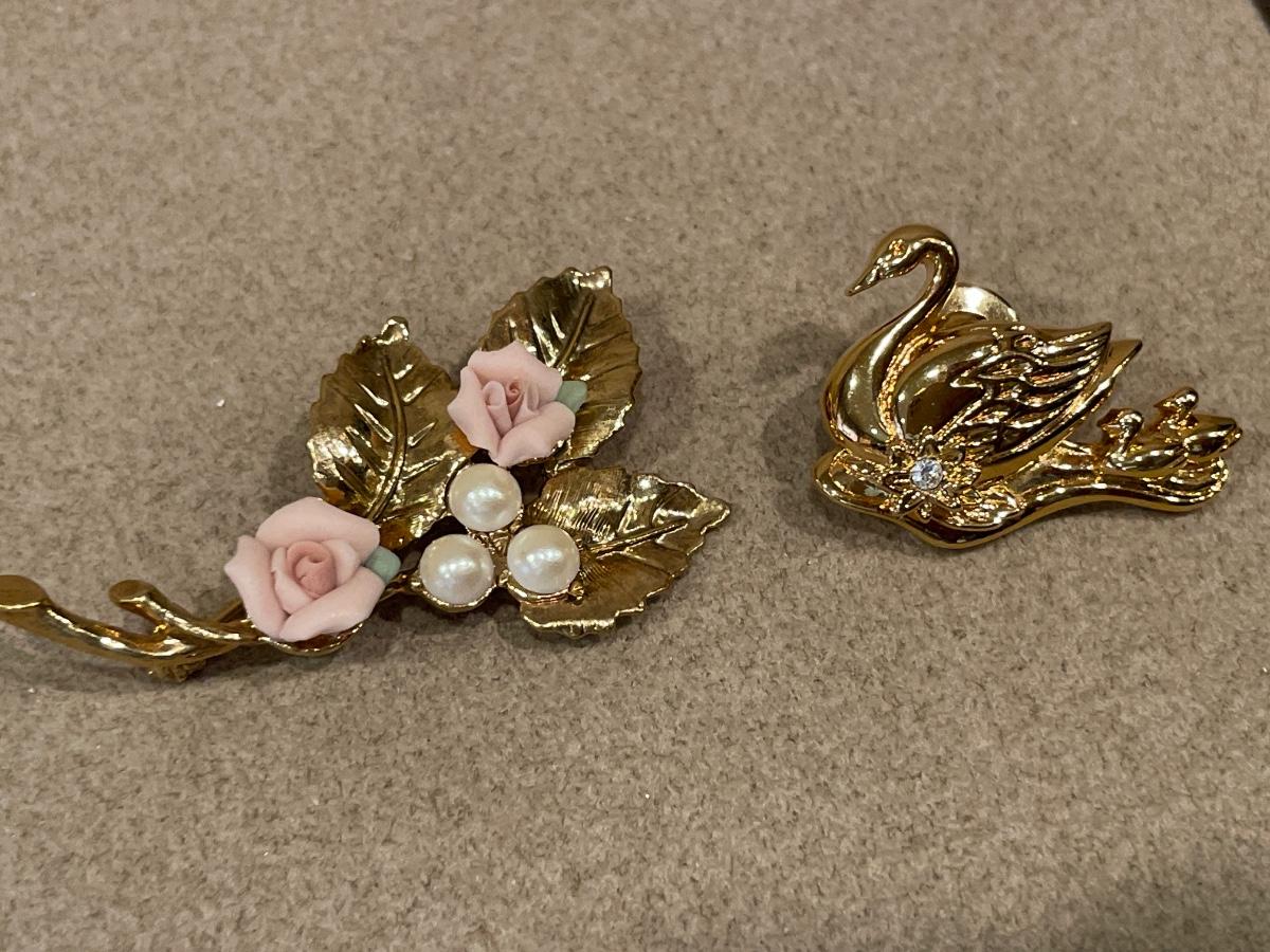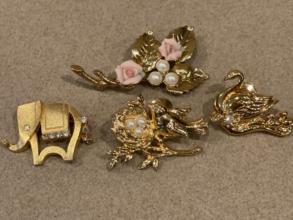 4 gold tone brooches