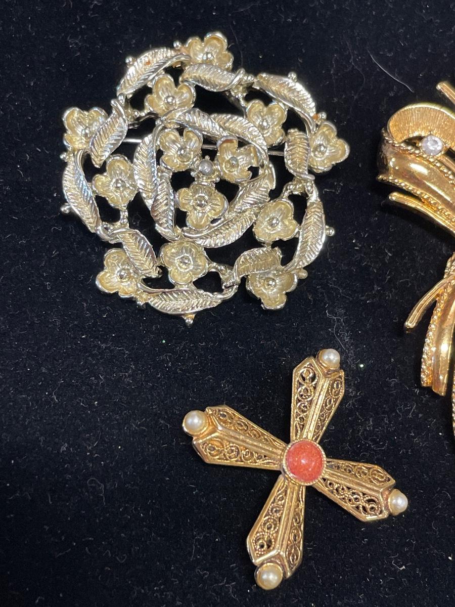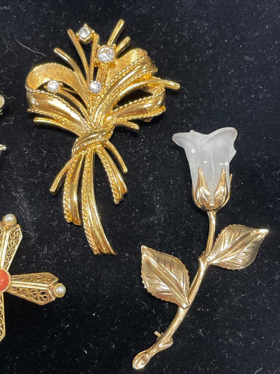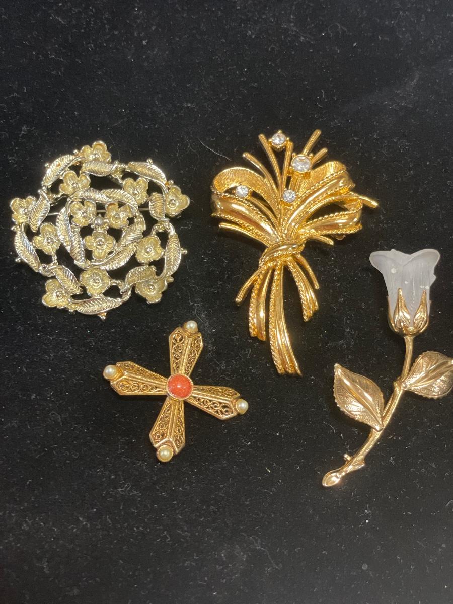 4 gold tone brooches