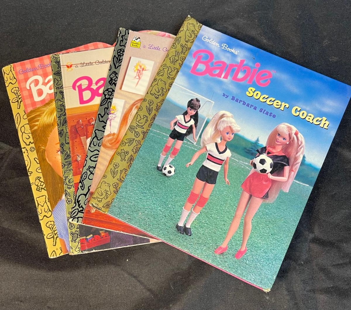 Golden Children Barbie Book Lot Soccer Coach, Very Busy Barbie, Holiday Helpers, & Freckles