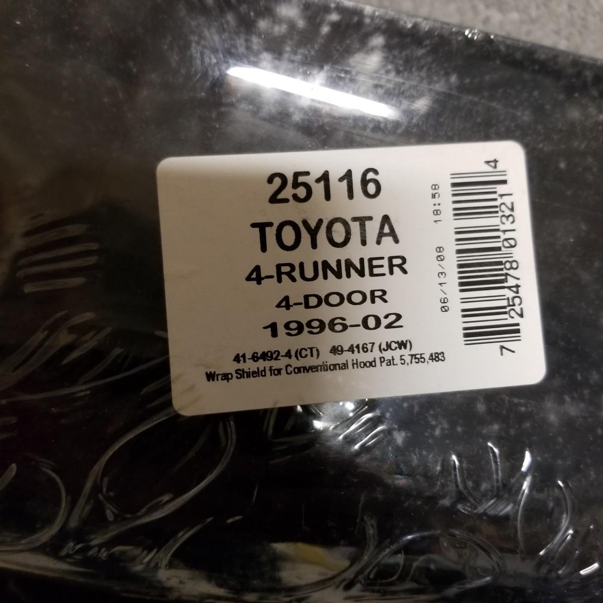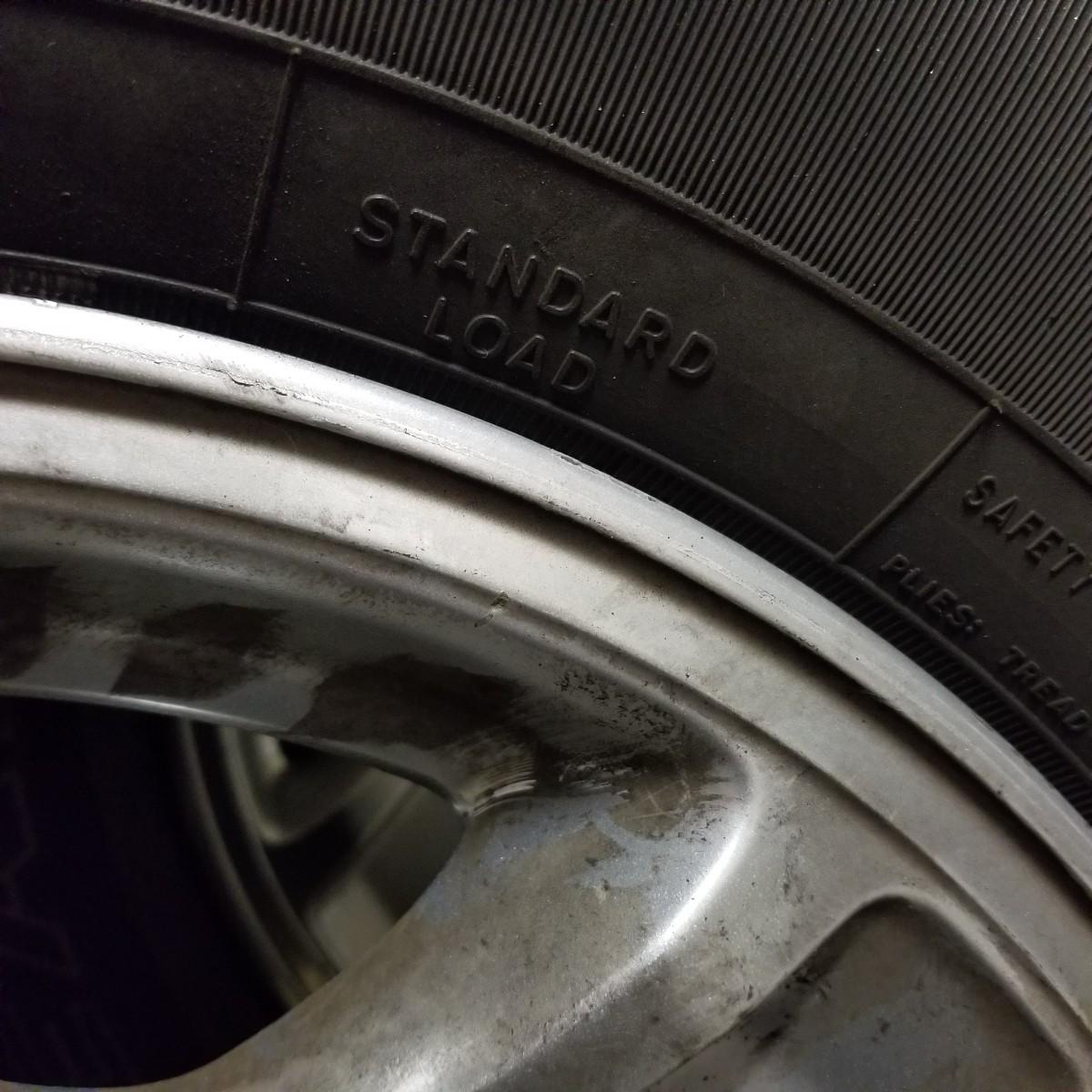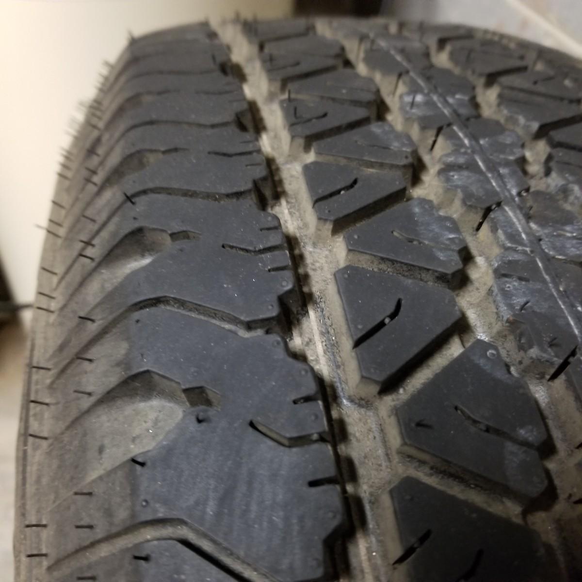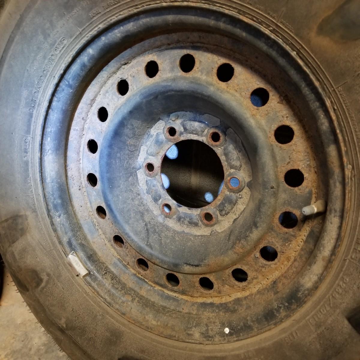 Four used tires and rims. All 265-70R-16 size. Three are Goodyear Wrangler SR-A, mounted on Toyota 6 bolt spoked rims. The fourth tire is a Goodyear Wrangler RT/S mounted on a 6 bolt rim, probably used as a spare. All tires show wear, more on the three SR-A set. See photos for details. Also included is a Toyota 4-Runner wrap shield for conventional hood, new in package. Label says it fits 1996-02 4-door. Local pickup only.