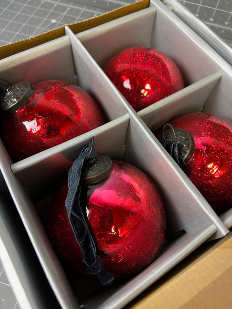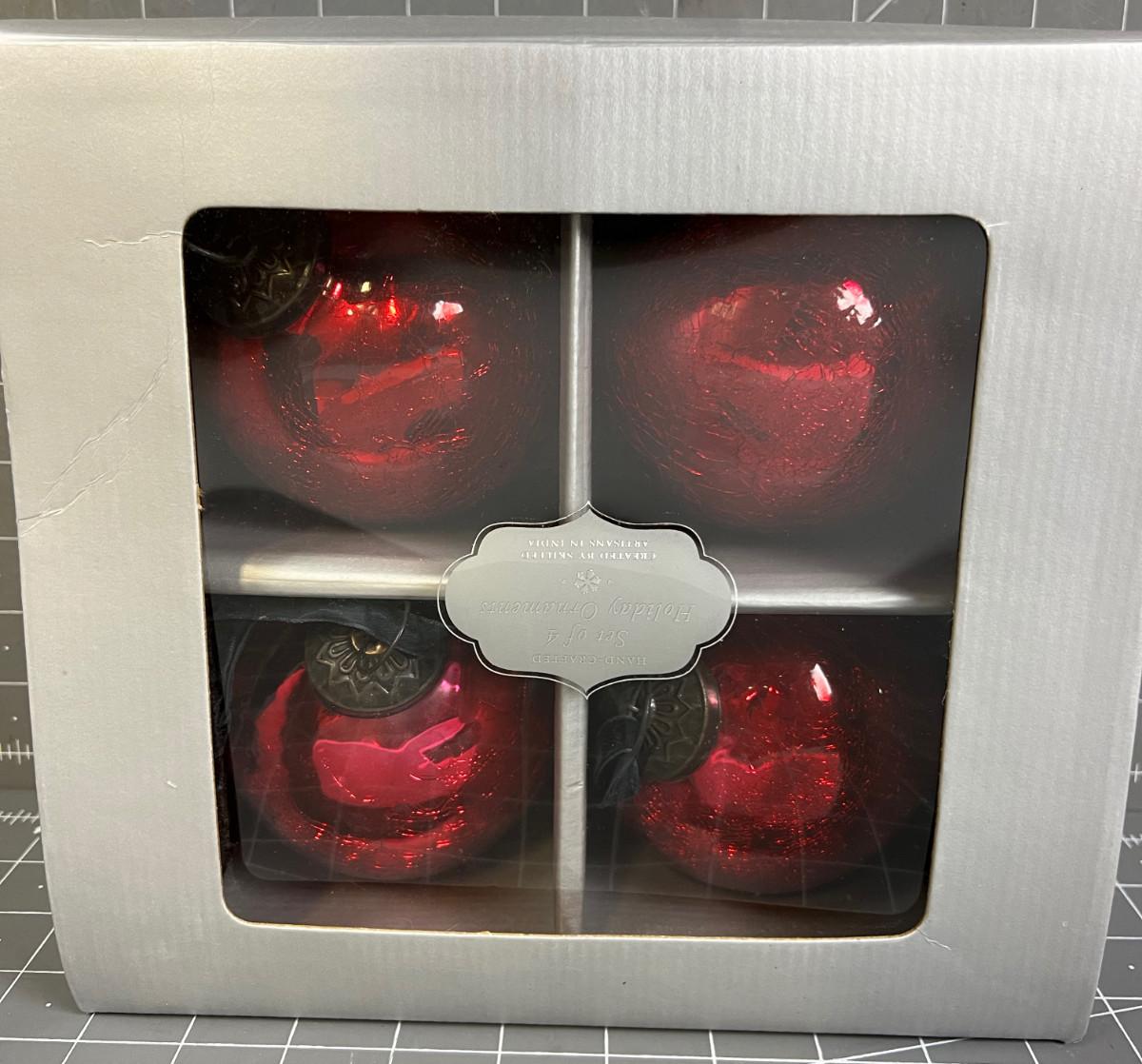 4 Gorgeous Hand Crafted Red (Bright) Glass Bulbs